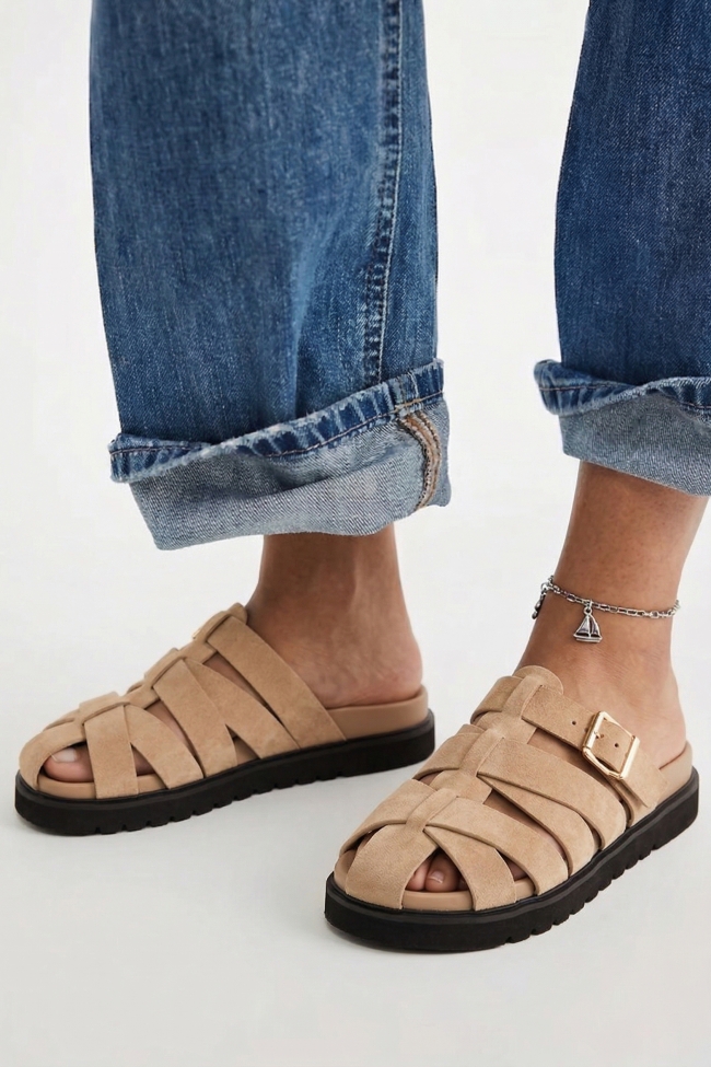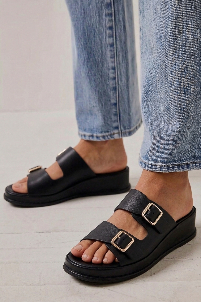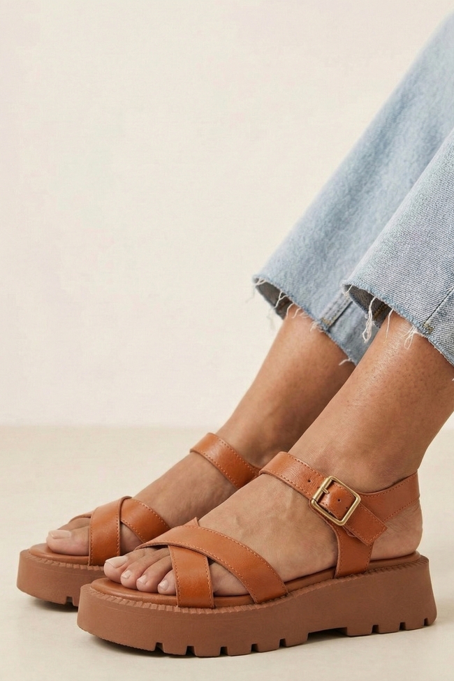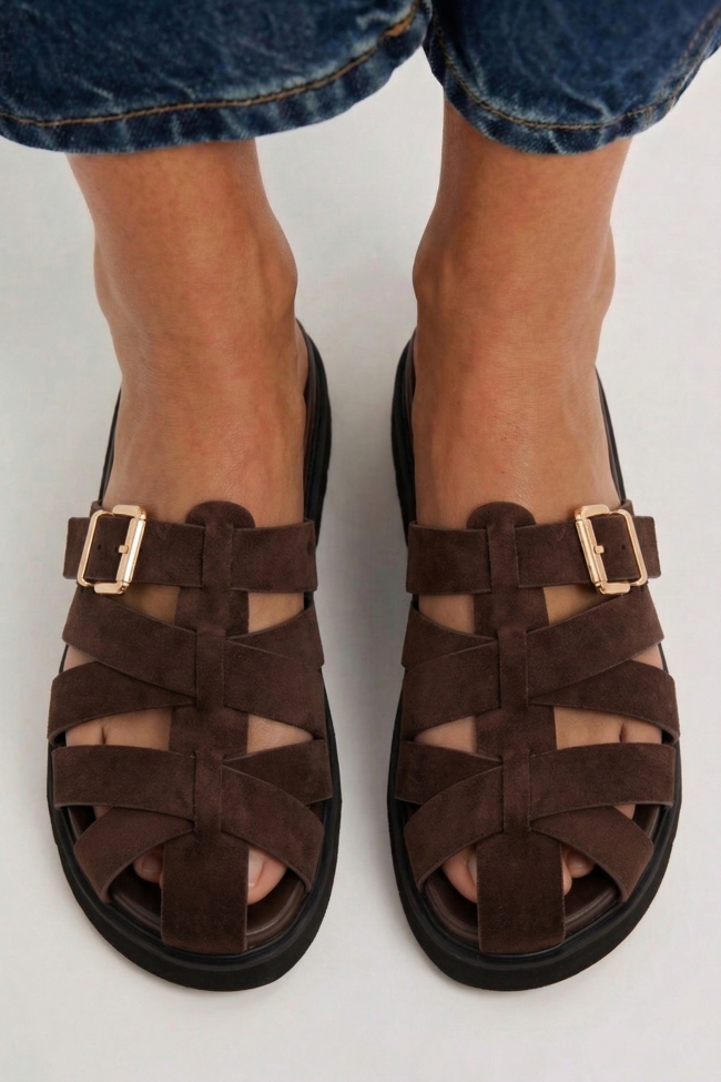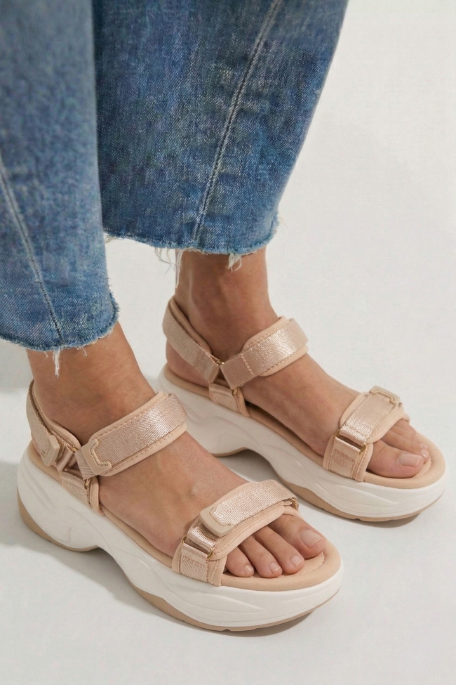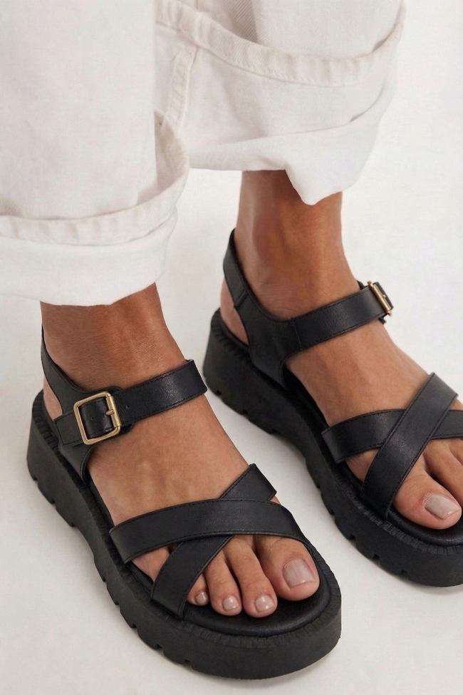 Sandali Flatform con Cinturini Elaborati e Fibbia