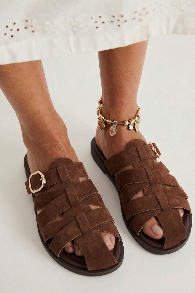 Sandali Bassi con Cinturini Elaborati e Fibbia