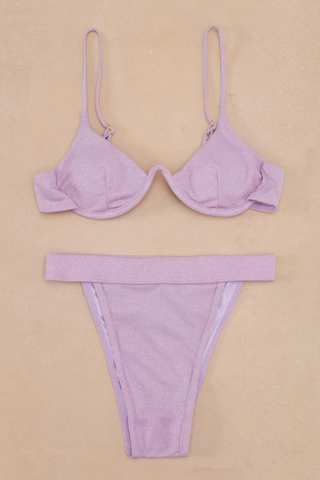 GIGI-Бански Комплект Бикини Lurex Висока Талия с Банелка