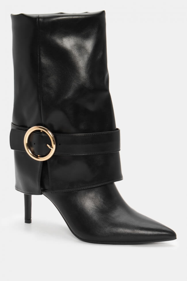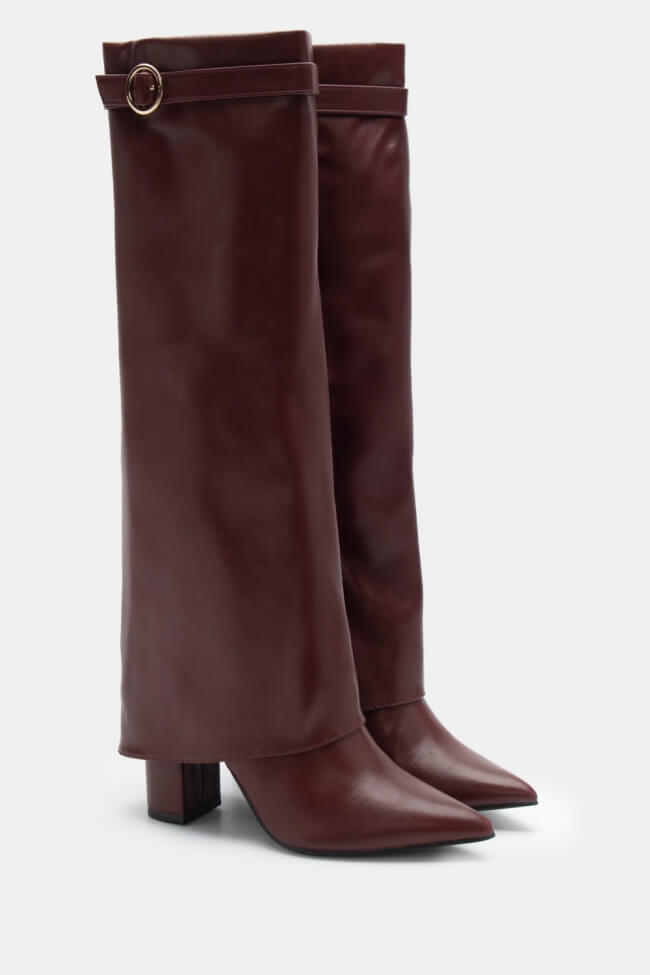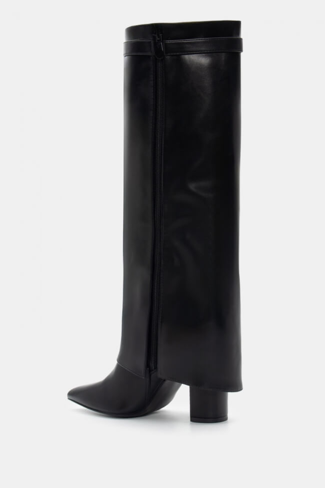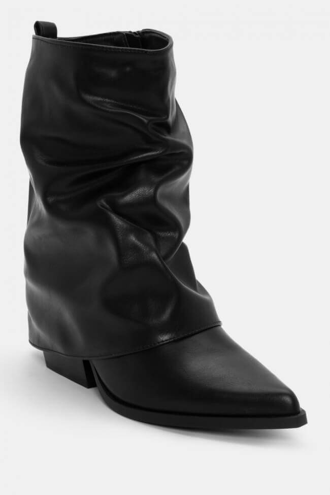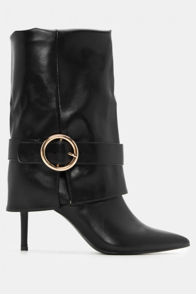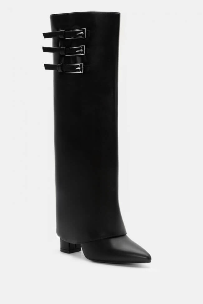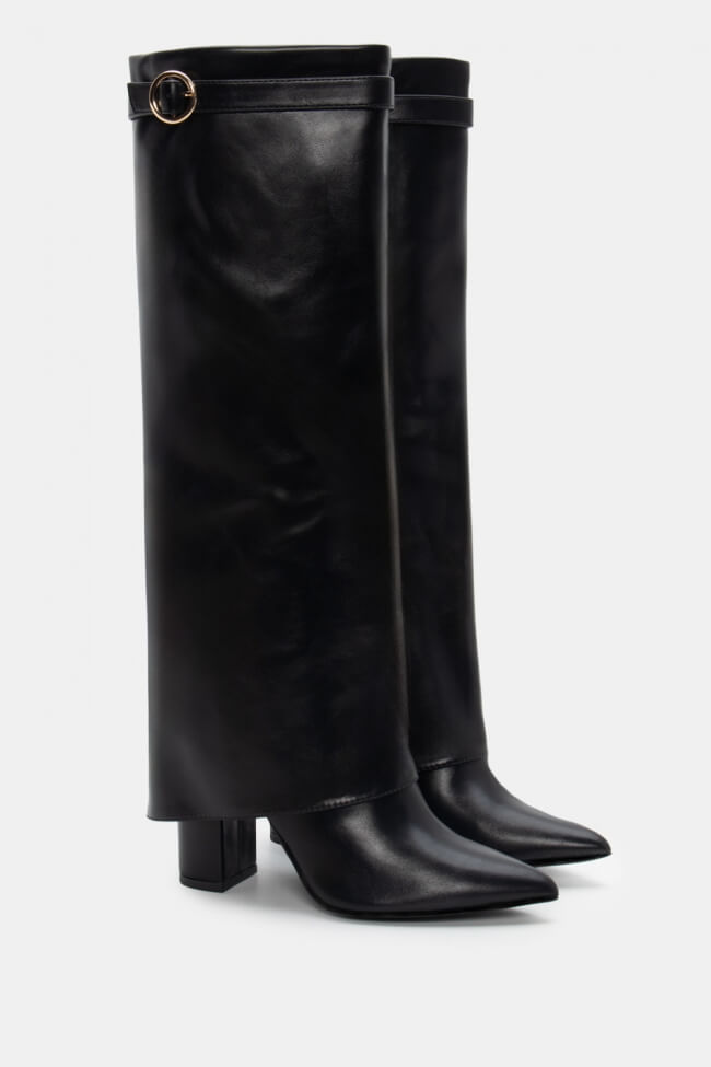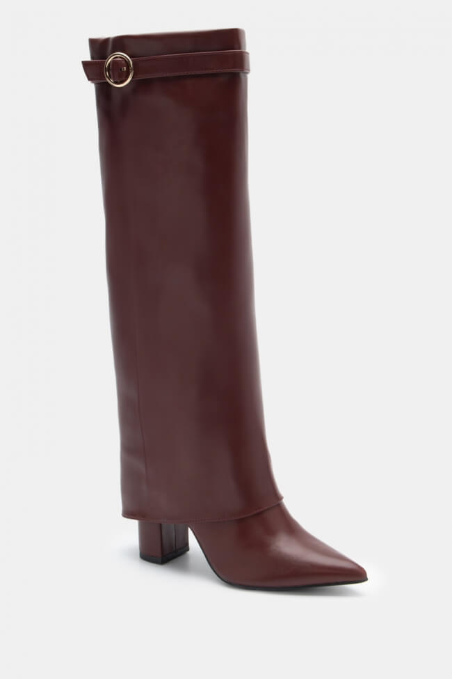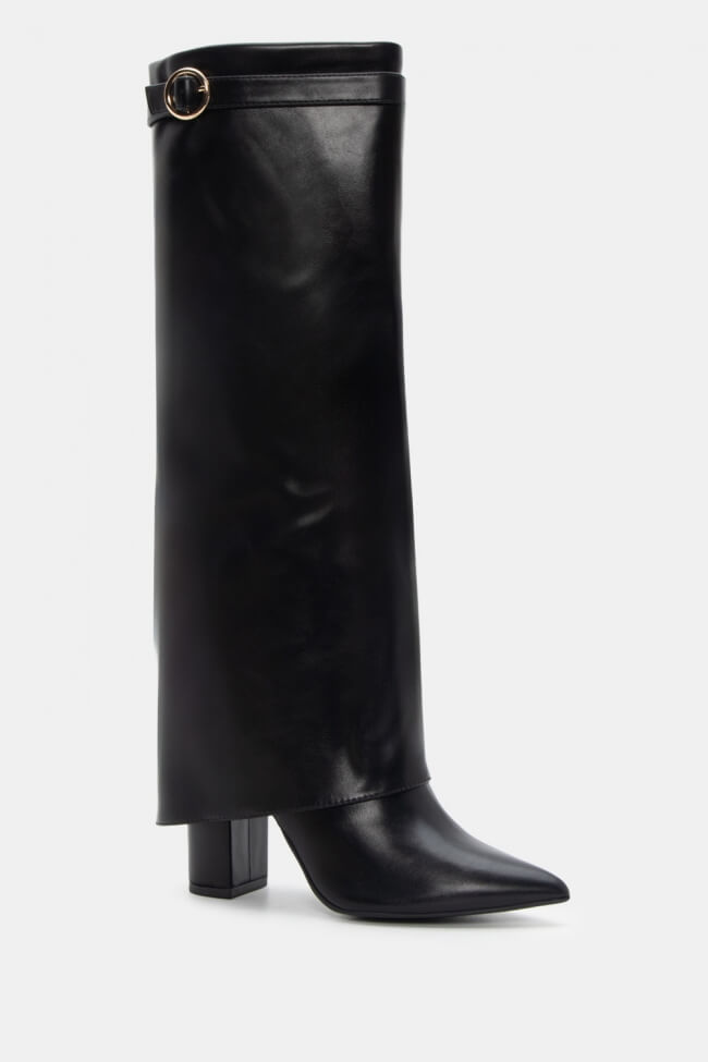 Μπότες Μυτερές με Εφέ Αναδιπλούμενης Φάσας & Τόκες