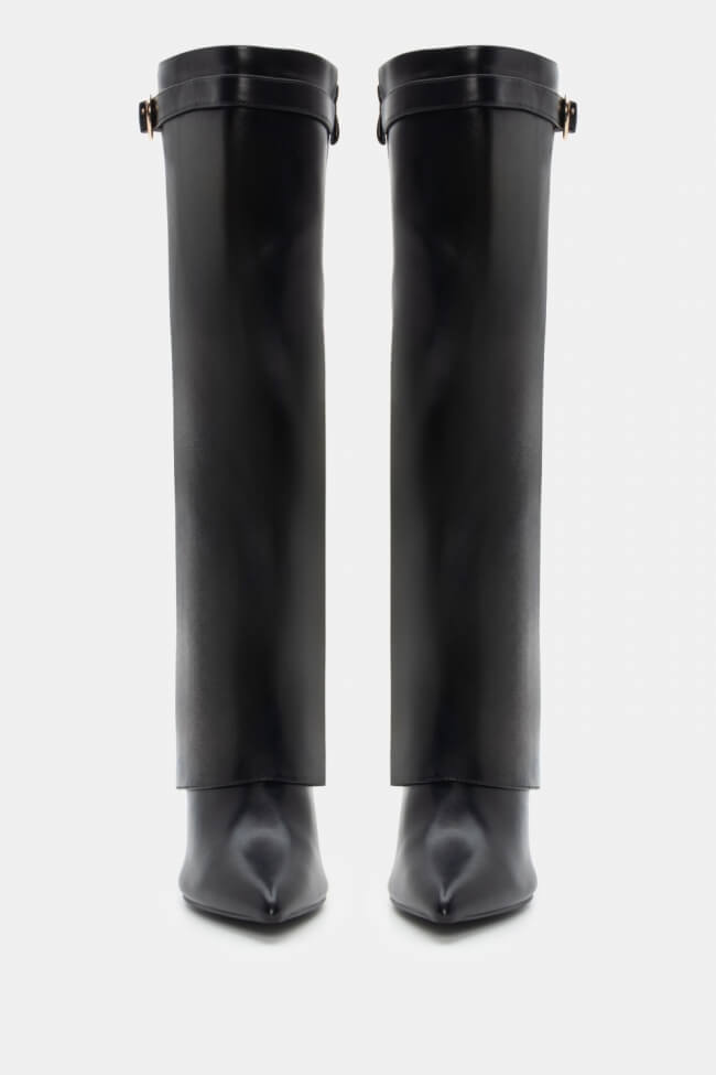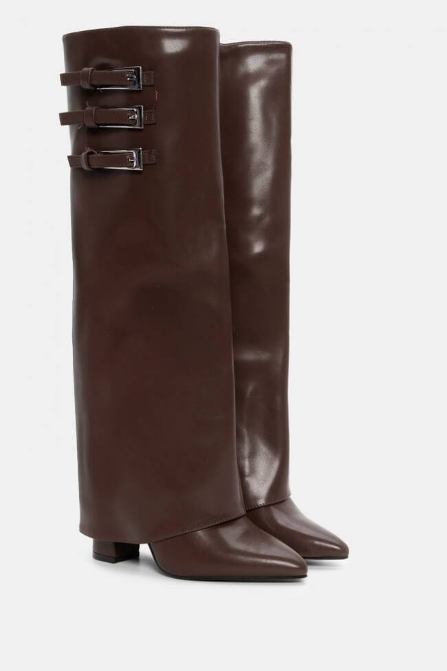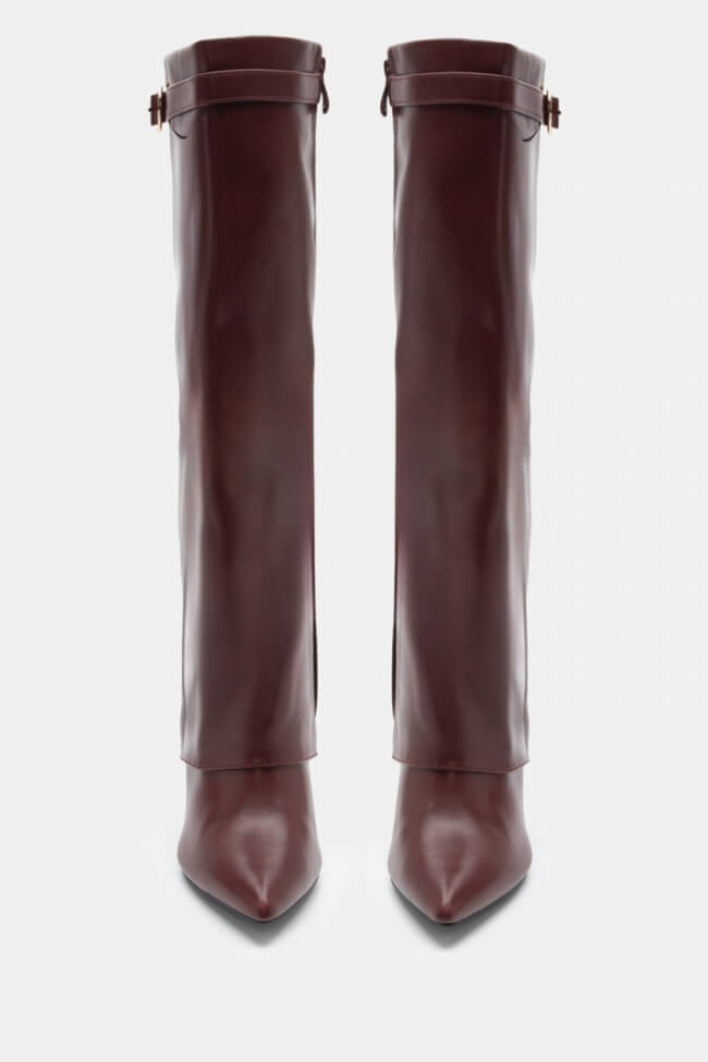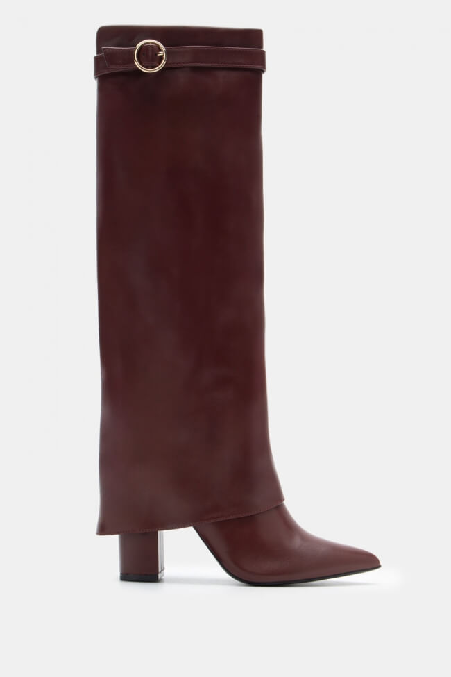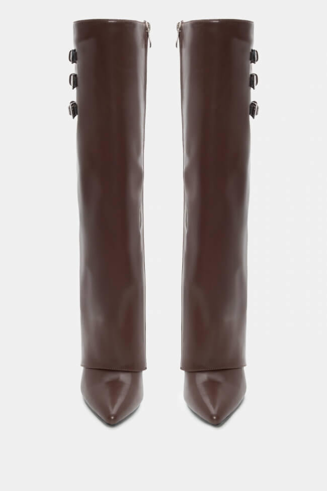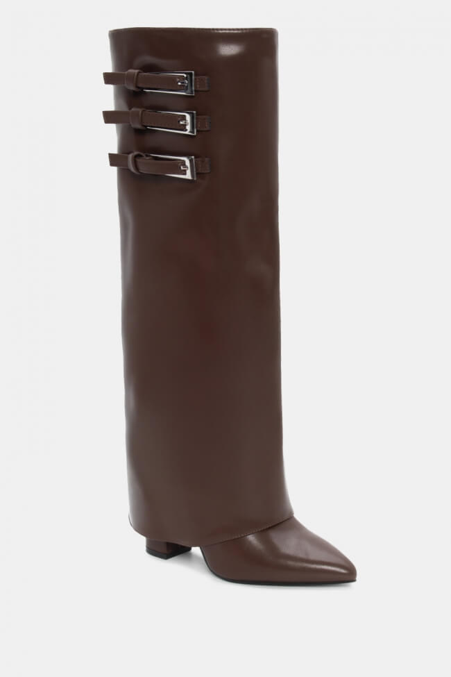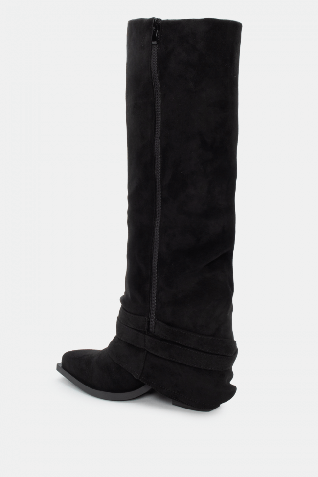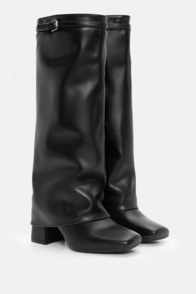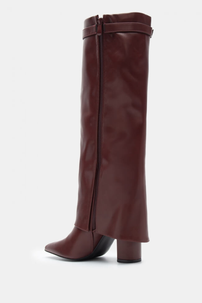 Μπότες Μυτερές με Εφέ Αναδιπλούμενης Φάσας & Τόκες