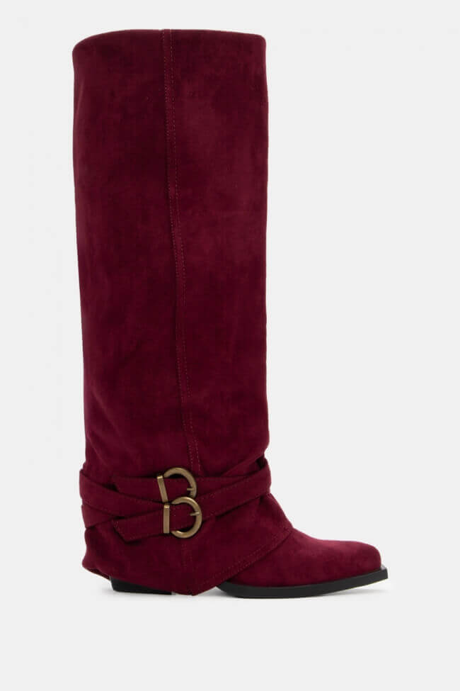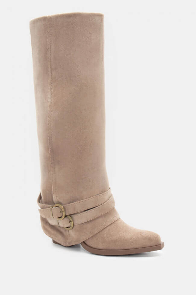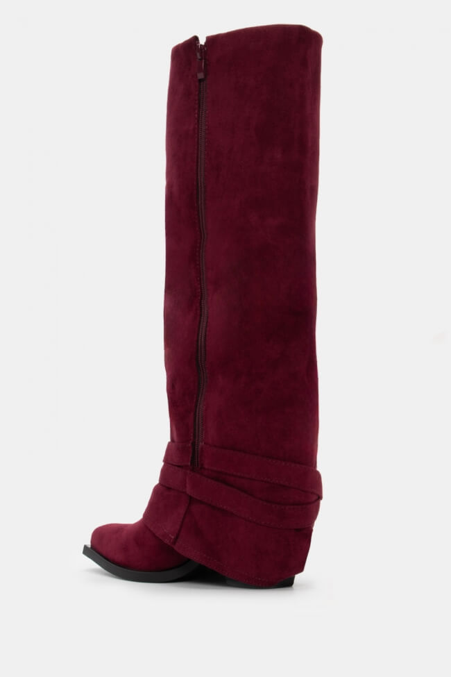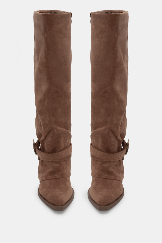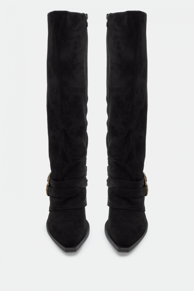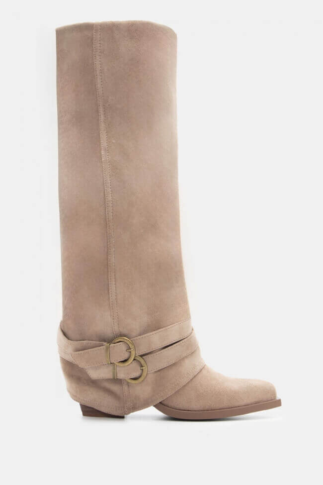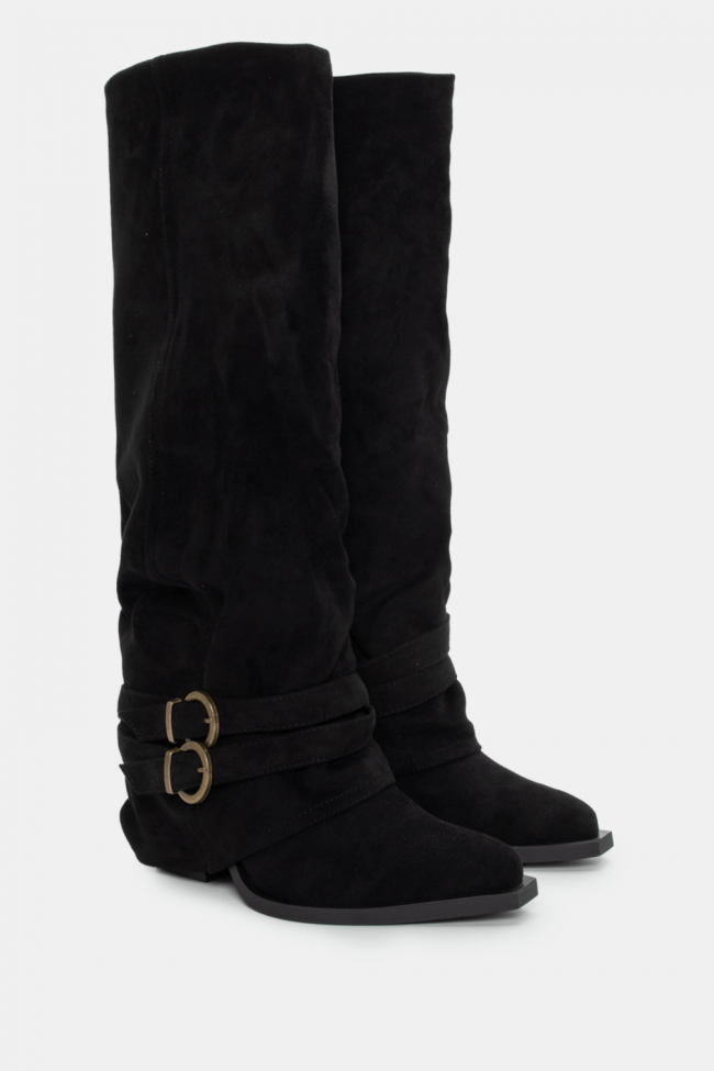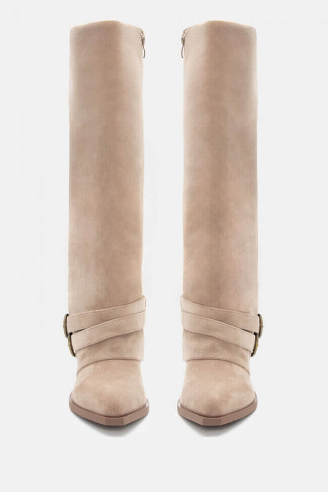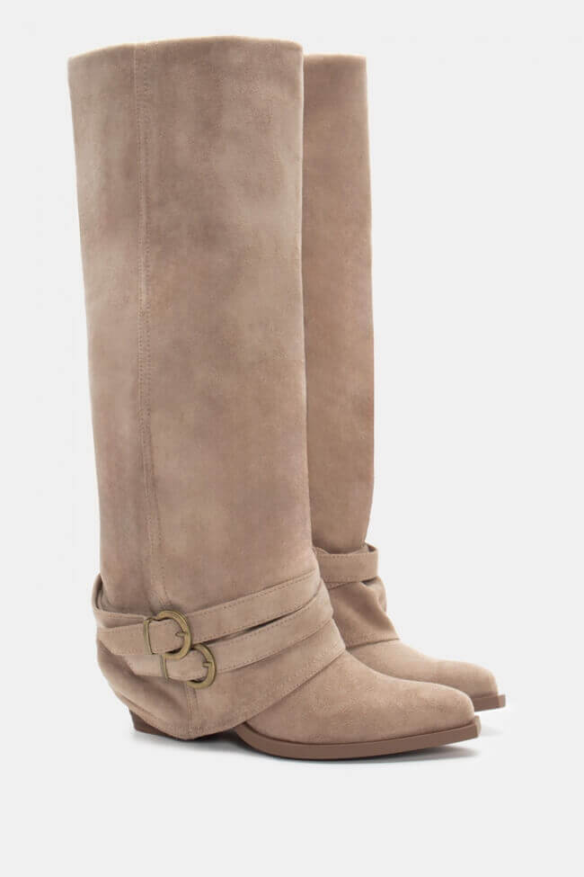 Μπότες Μυτερές με Εφέ Αναδιπλούμενης Φάσας & Τόκες