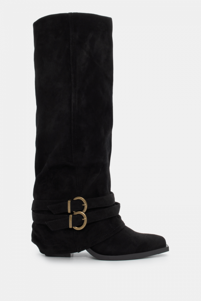 Μπότες Cowboy με Εφέ Αναδιπλούμενης με Διπλά Λουράκια