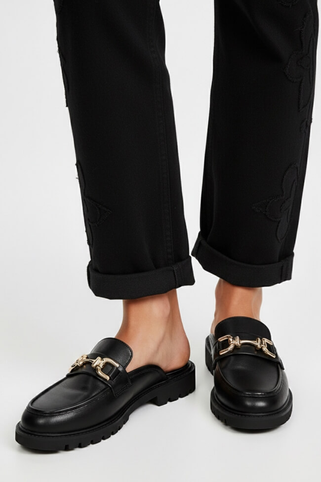 - Flat mules Ιδανικά για all-day άνεση. Φόρεσέ τα με jeans, shorts ή αέρινα παντελόνια.