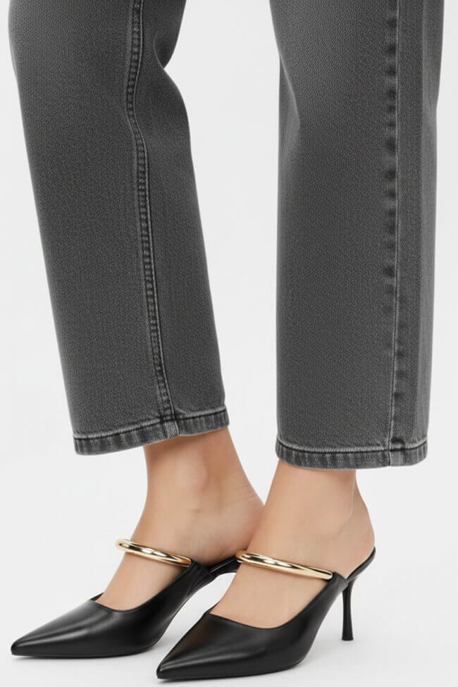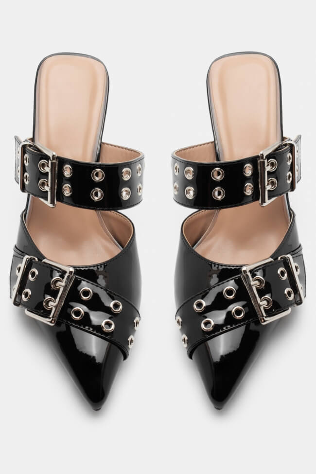 - Διάλεξε ψηλά mules satin ή δερμάτινα με strappy λεπτομέρειες για sleek & feminine αποτέλεσμα.