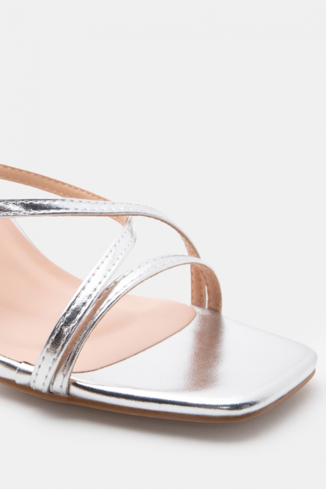 - Alege mules înalte satin sau din piele cu detalii strappy pentru un rezultat sleek & feminin.