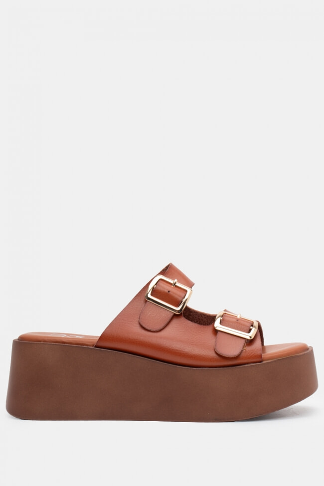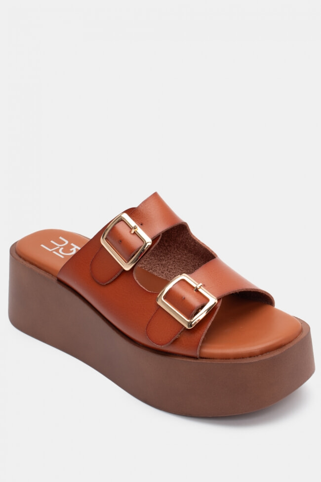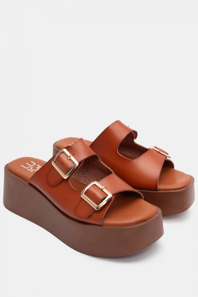 LUIGI DESIGN - Δερμάτινα Σανδάλια Flatform με Ανοίγματα στο Πλάι