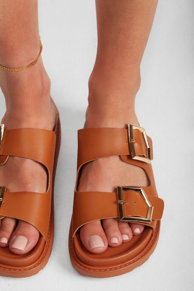 Σανδάλια Flatform με Διπλά Λουράκια & Διακοσμητικό