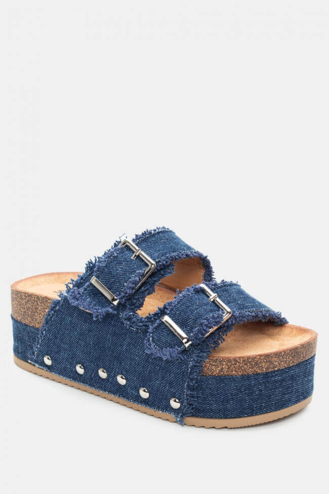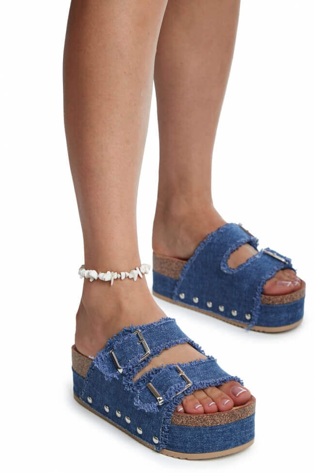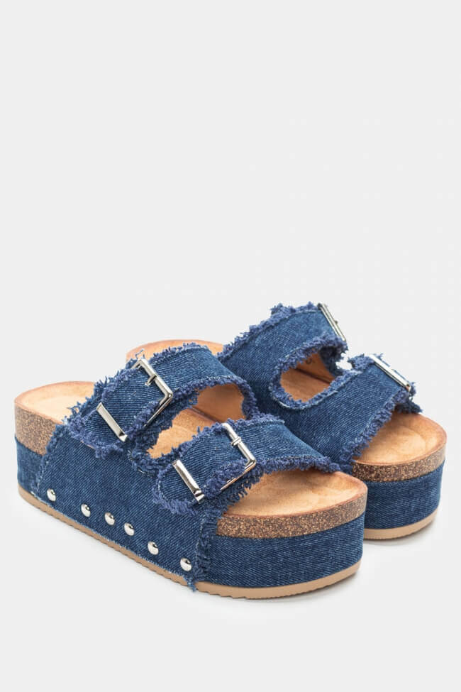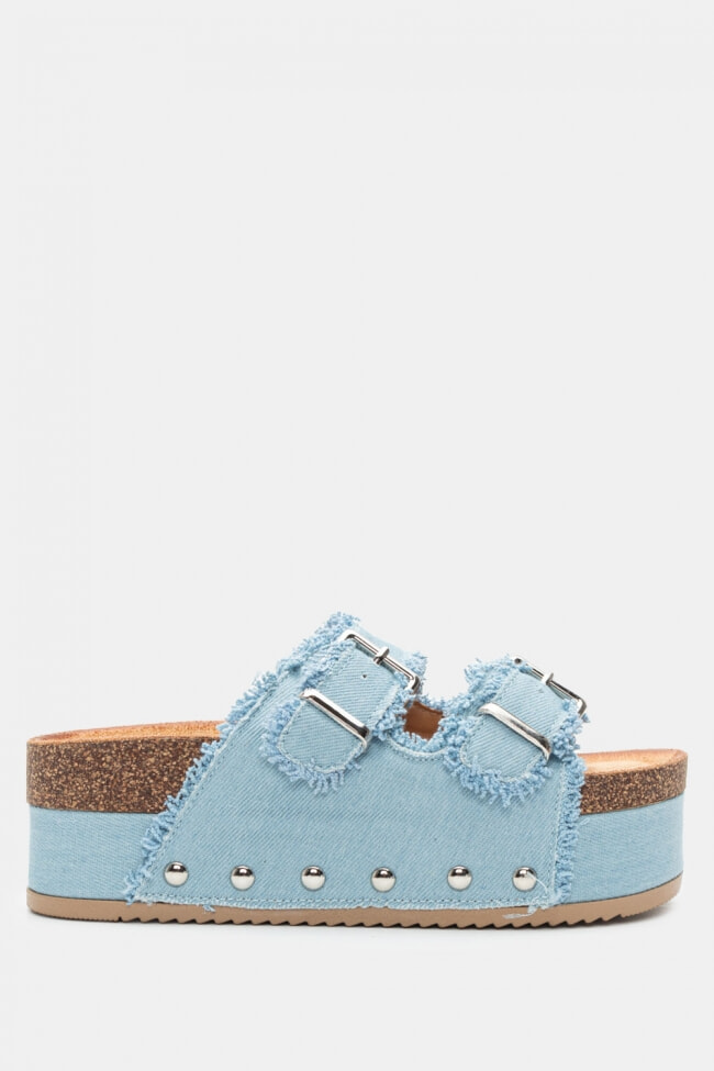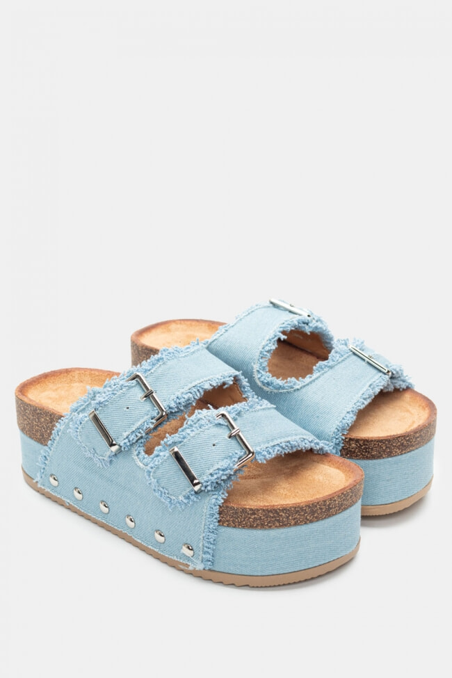 Platforme din Denim cu Catarame Duble