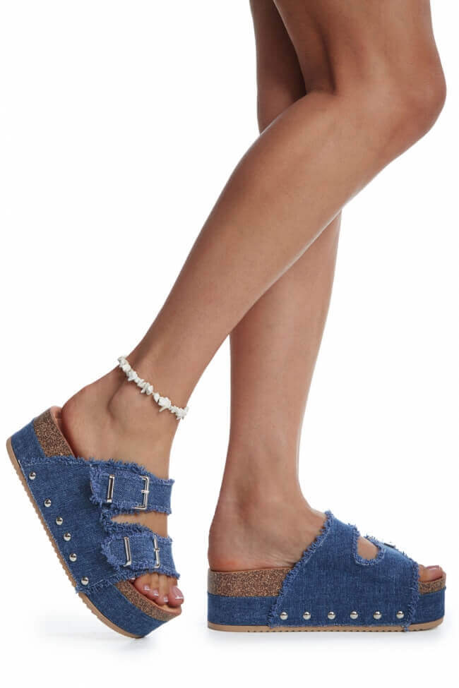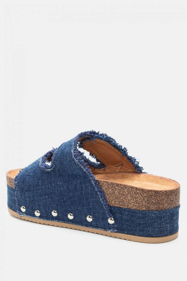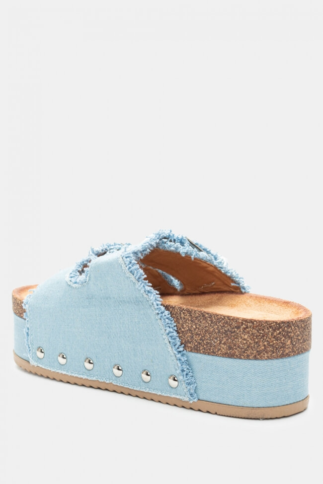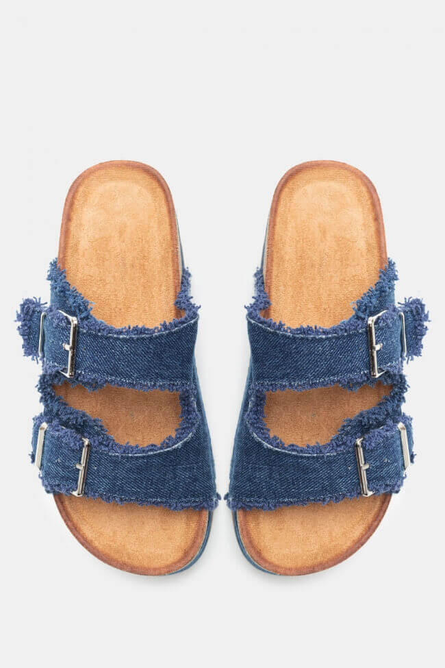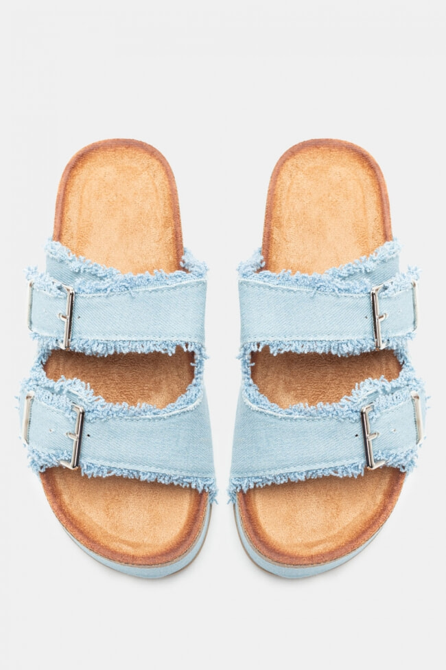 Platforme din Denim cu Catarame Duble