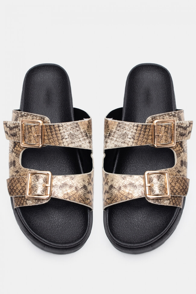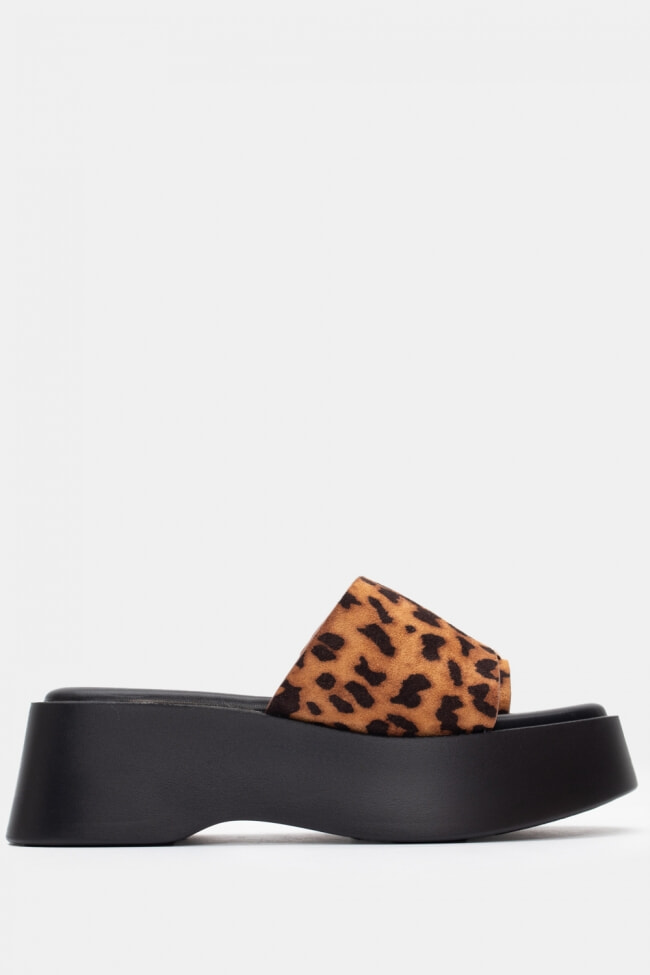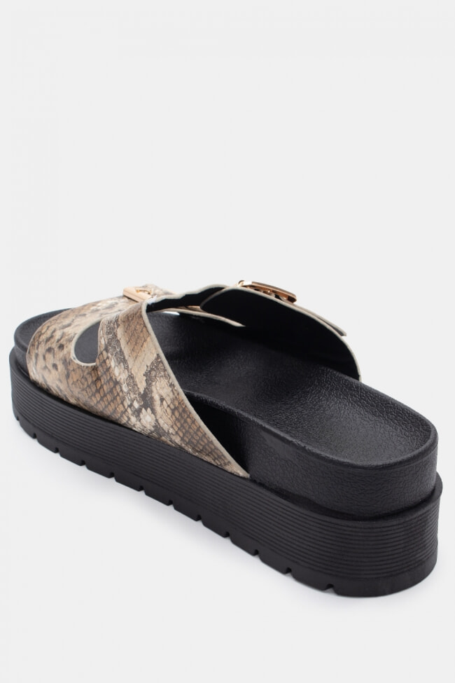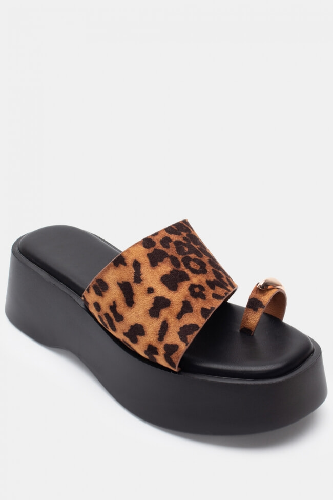 - Flatforms cu imprimeu animal pentru un stil de vacanță și evadări insulare.