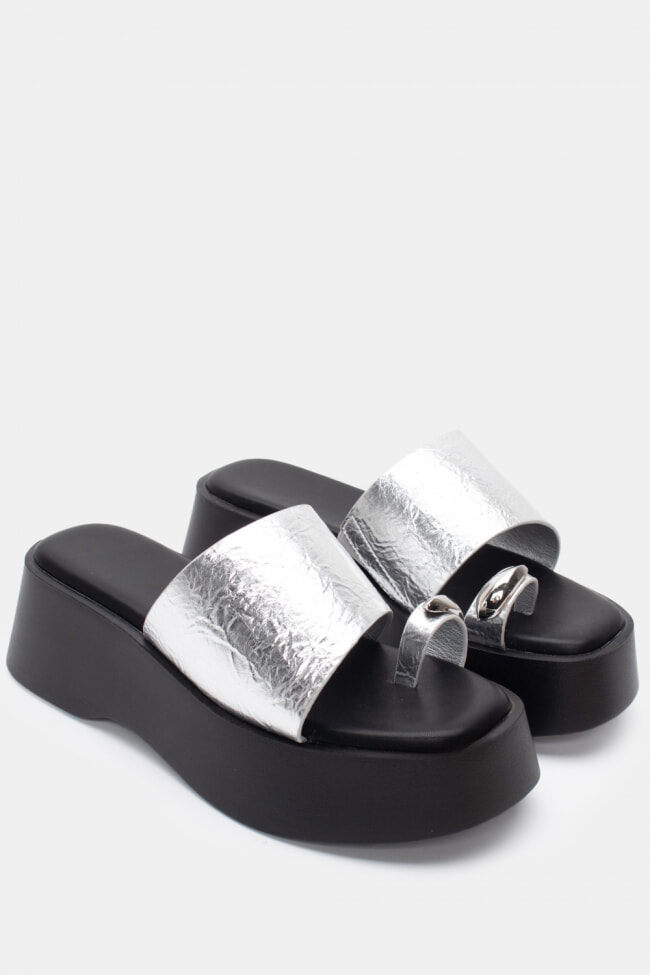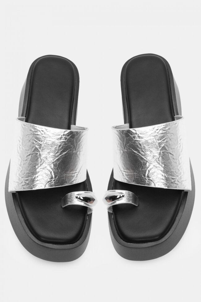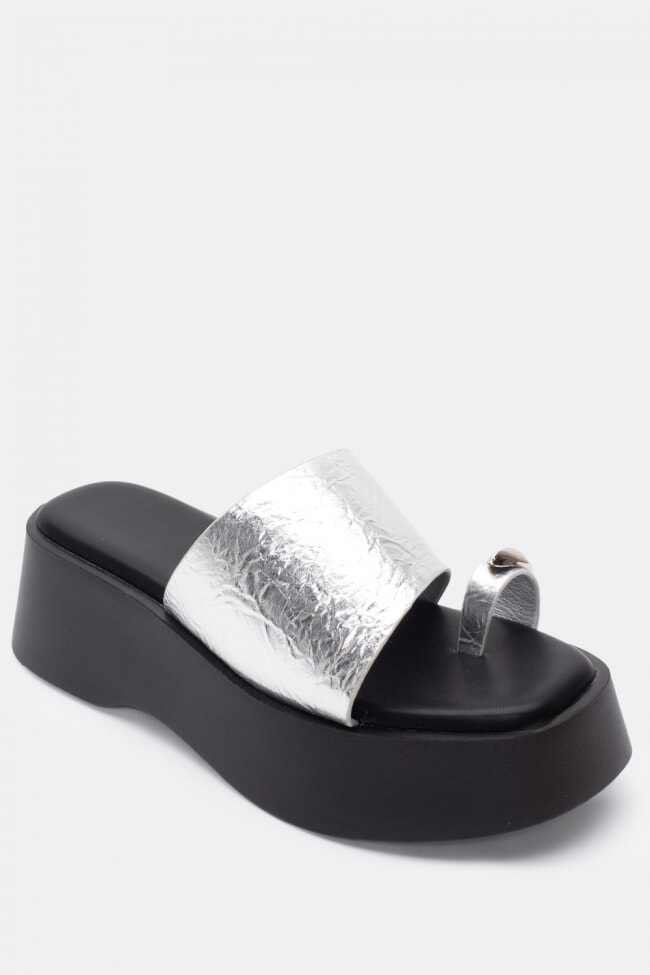 Sandale Flatform cu Detaliu Metalic V