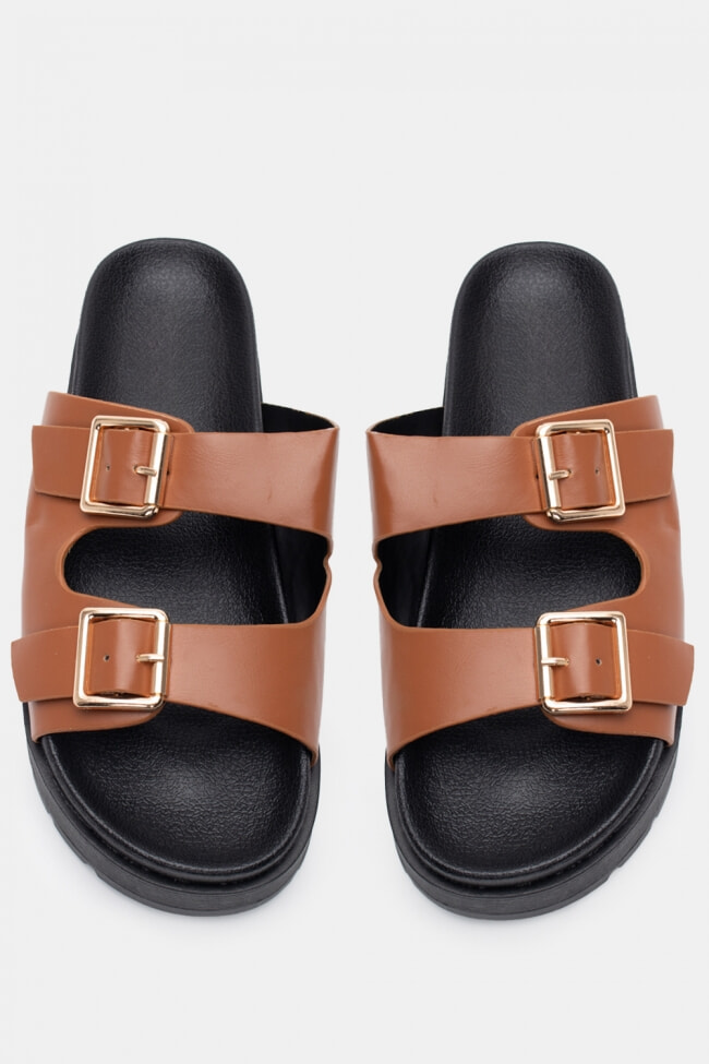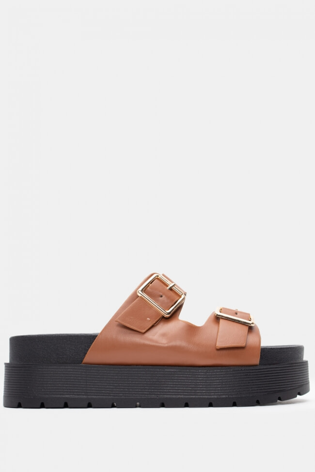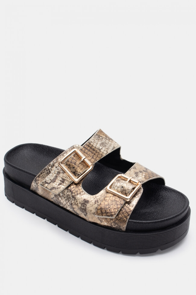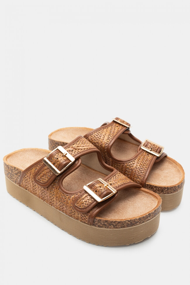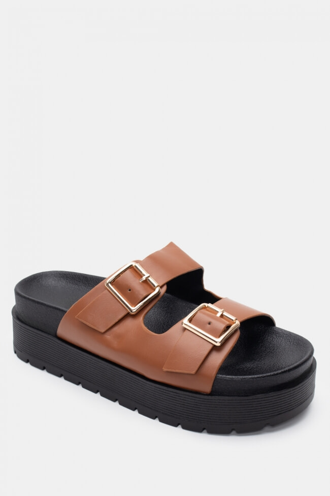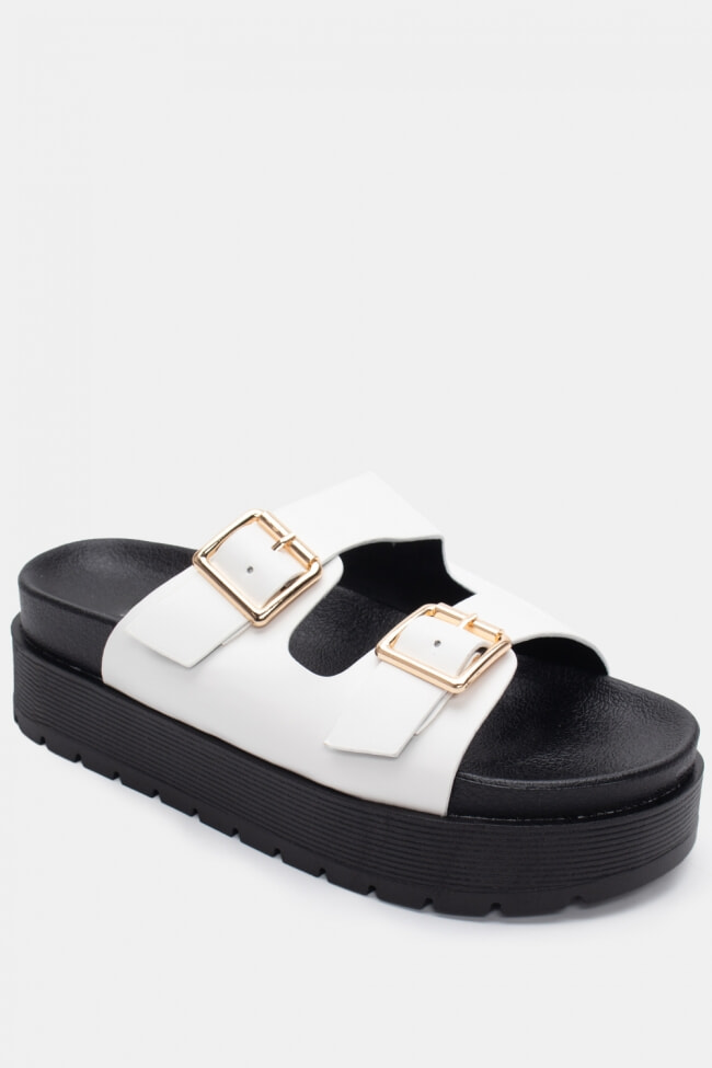 Sandale Flatform cu Catarame Duble
