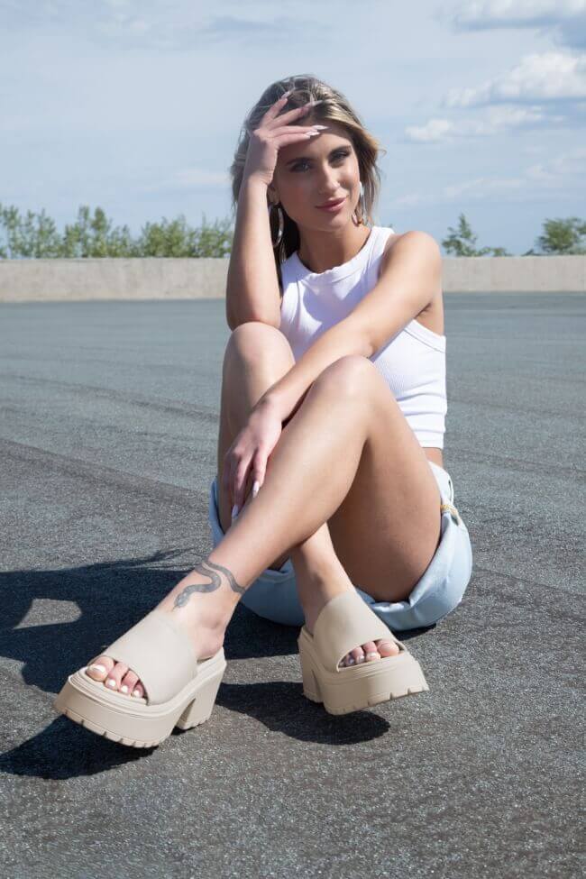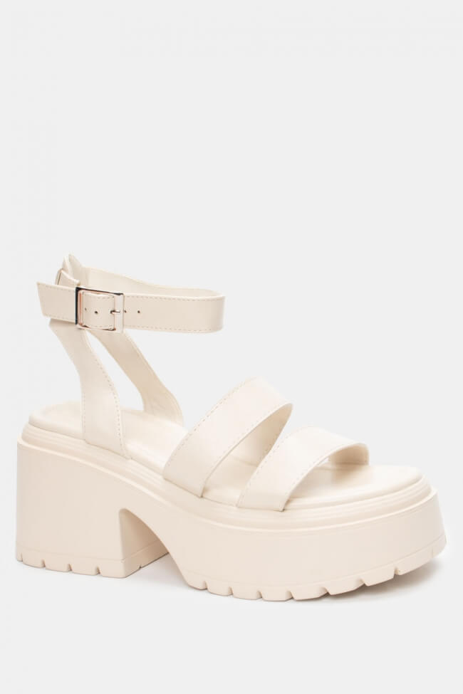 Δοκίμασε πλατφόρμα με τακούνι σε λευκό ή μπεζ, χωρίς υπερβολές. Ιδανική επιλογή για summer wardrobe που σε βγάζει πάντα ασπροπρόσωπη.