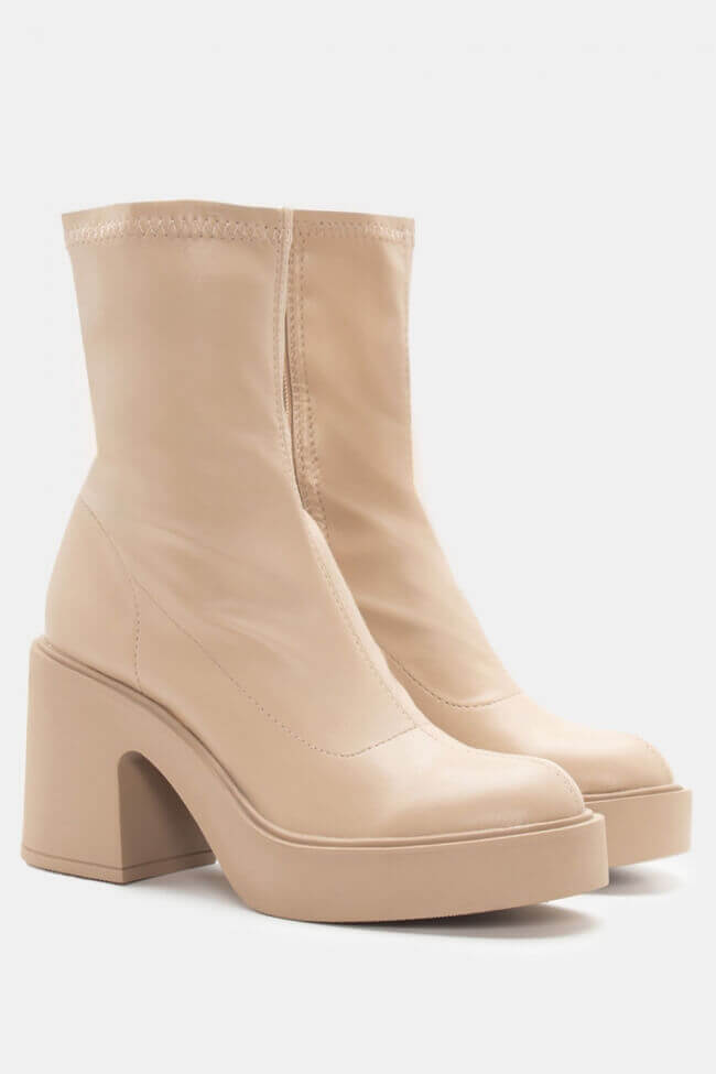 Η φιάπα στο μπροστινό μέρος εξισορροπεί το ύψος του τακουνιού, καθιστώντας τα μποτάκια αυτά ιδανικά για πολύωρη χρήση, είτε πρόκειται για βραδινές εξόδους είτε για μια ιδιαίτερη περίσταση. Οπότε, δεν είναι μόνο τα μποτάκια με χαμηλό τακούνι άνετα!