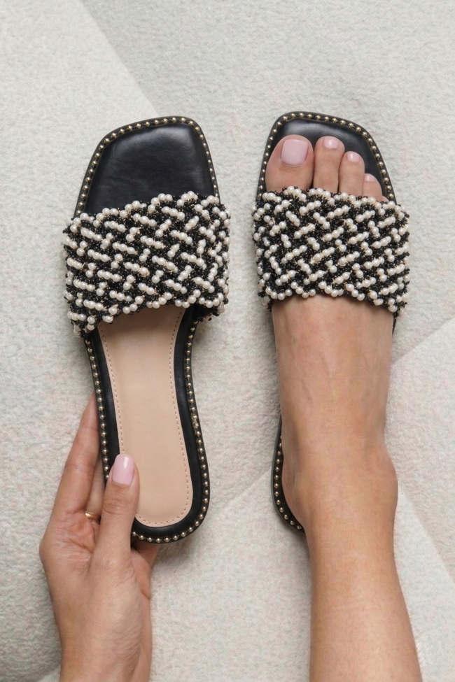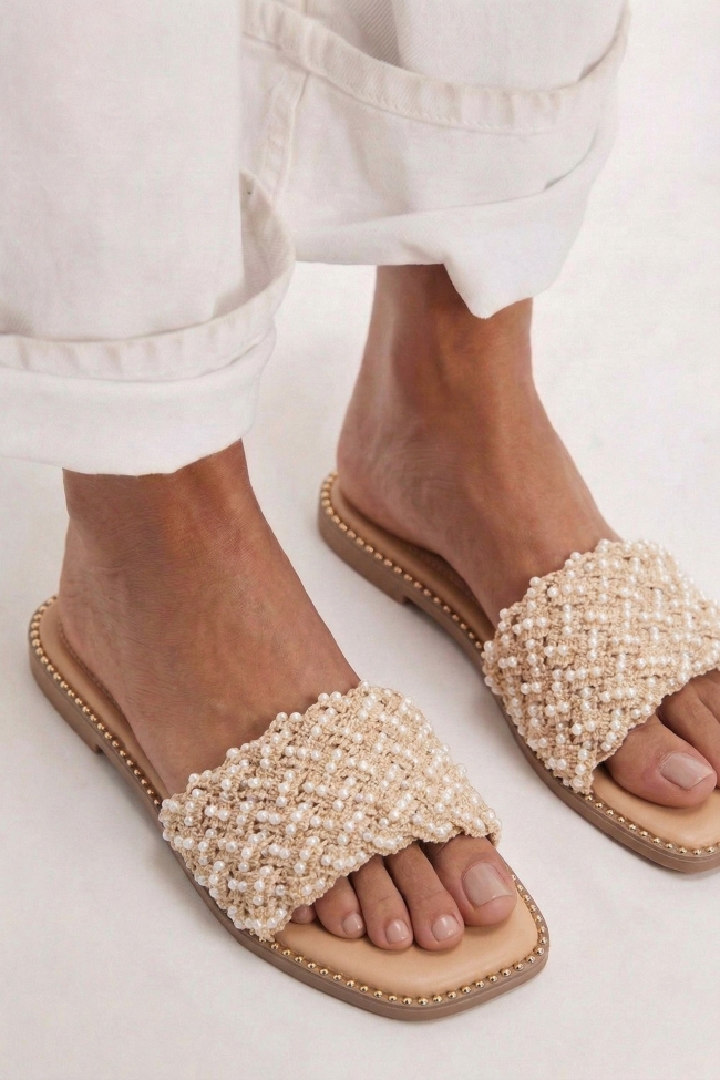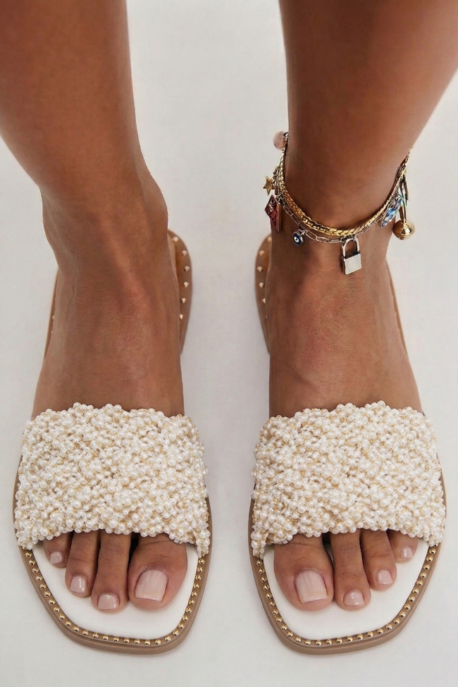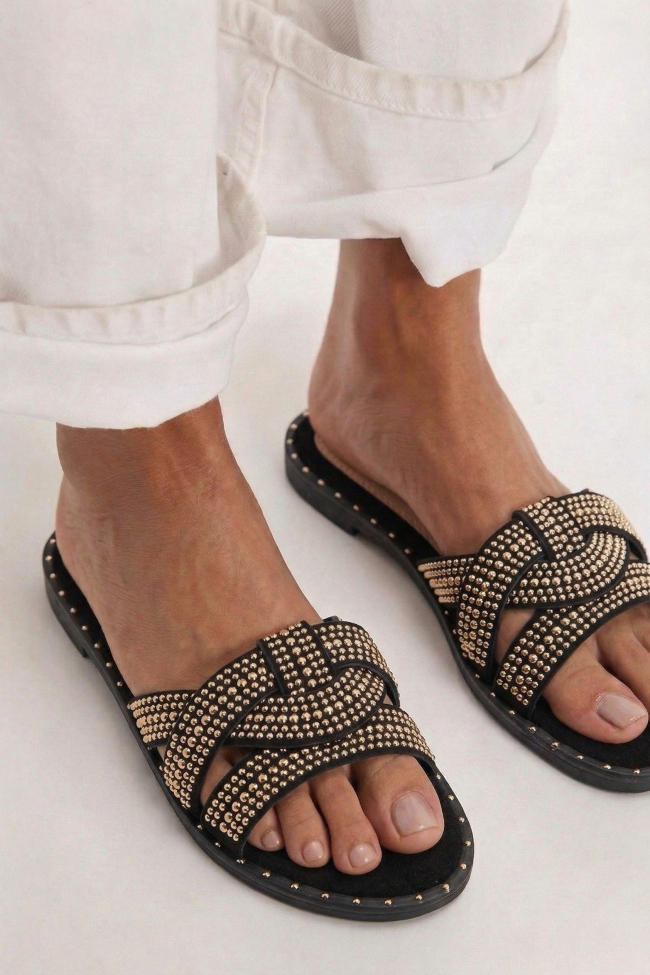- Φλατ σανδάλια με στρας: Ιδανικά για κορίτσια που δεν φοράνε τακούνια αλλά θέλουν αυτό το έξτρα glam! Φόρεσέ τα με αέρινα φορέματα, βερμούδες, αλλά και με παρεό και μαγιό για super stylish παραλιακά looks. Ναι, το glam πάει παντού!