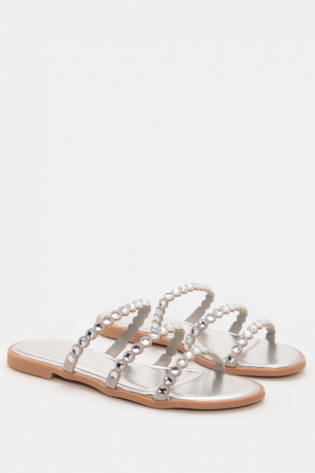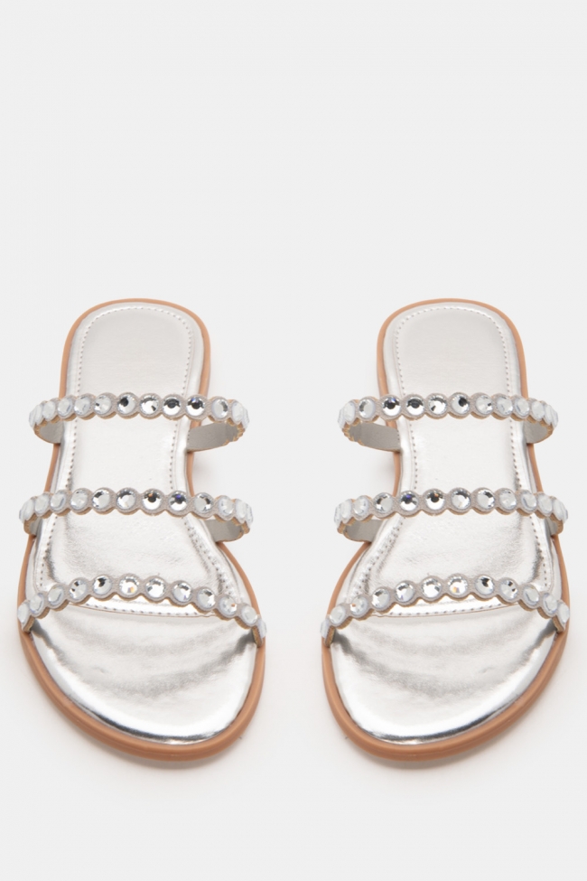 #2. Sandale cu strasuri: Pentru un plus de glam și feminitate, ideale cu fuste mini, pantaloni scurți sau rochii maxi, adăugând strălucire fiecărui pas și făcând chiar și cel mai simplu outfit să pară impresionant și elegant.