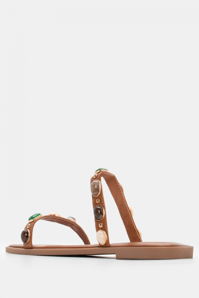 #4. Sandale plate Boho: Cu detalii croșetate sau din material textil, pentru o atmosferă mai relaxată și estivale, care se asortează perfect cu rochii lungi, kimono aerisit sau chiar pantaloni scurți cu o bluză din in largă pentru apariții absolut libere.