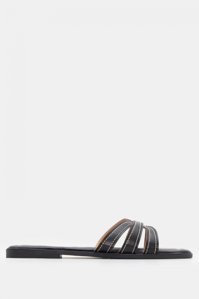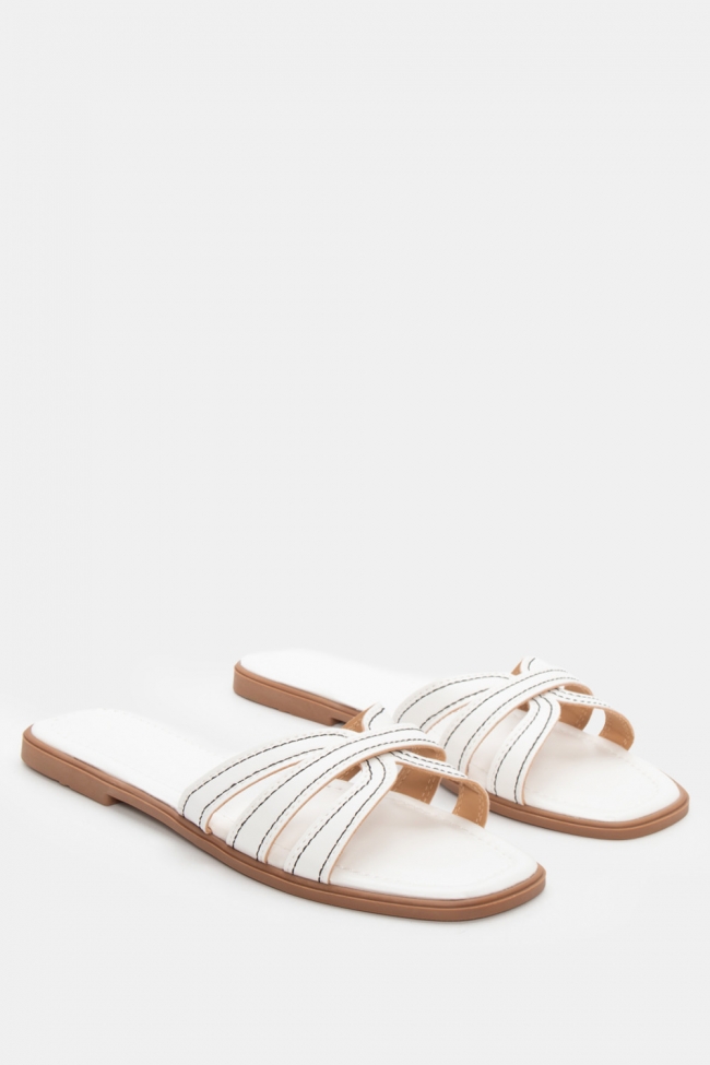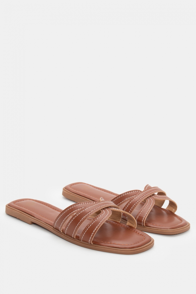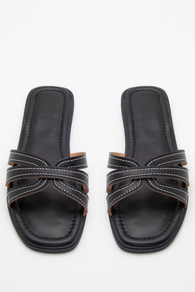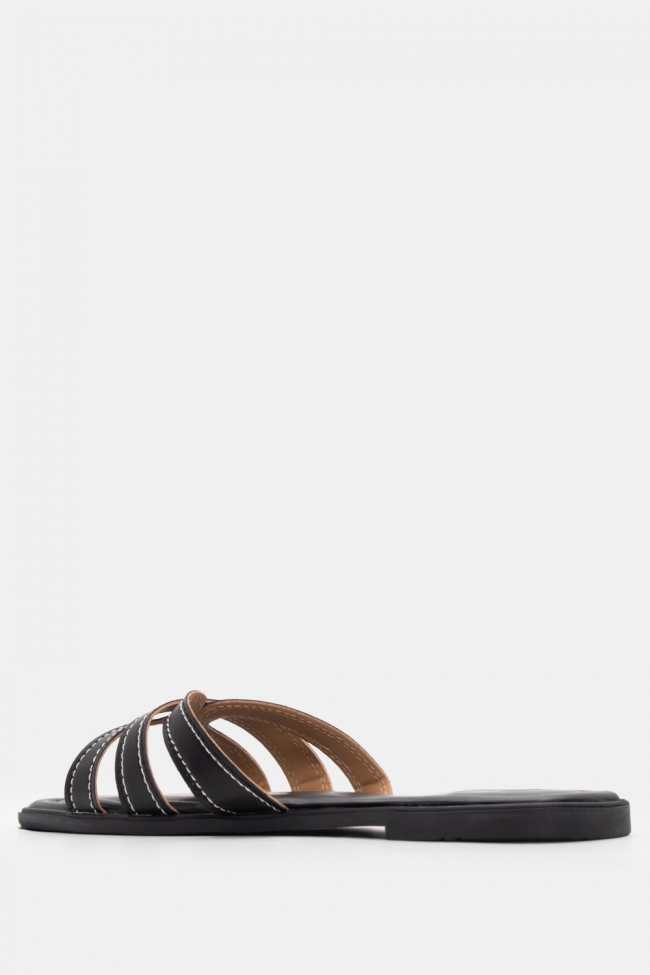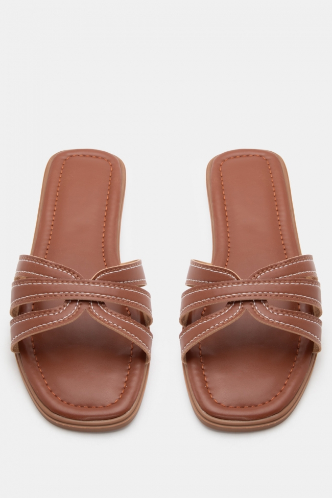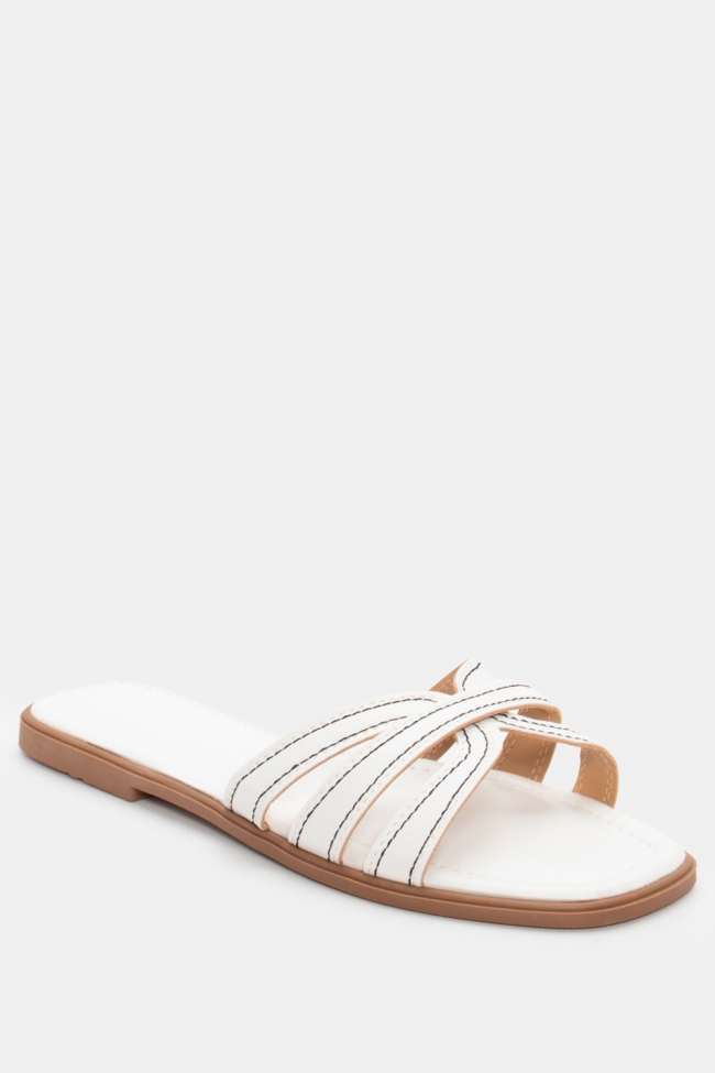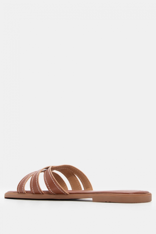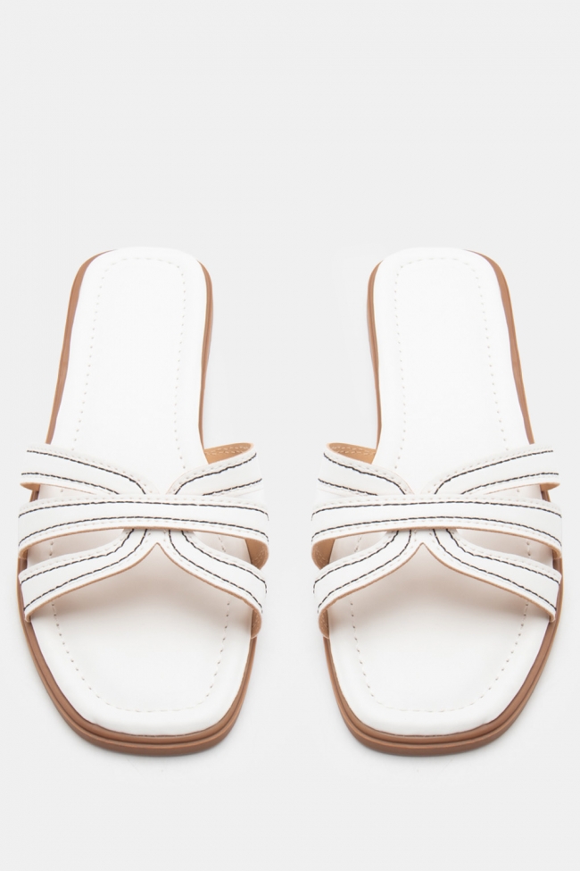 #1. Sandale plate cu linie minimală: Perfecte pentru lookuri zilnice cu blugi, pantaloni scurți sau rochii lejere.