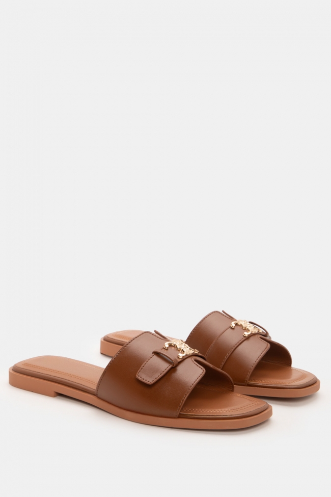 Sandale flat cu detaliu metalic
