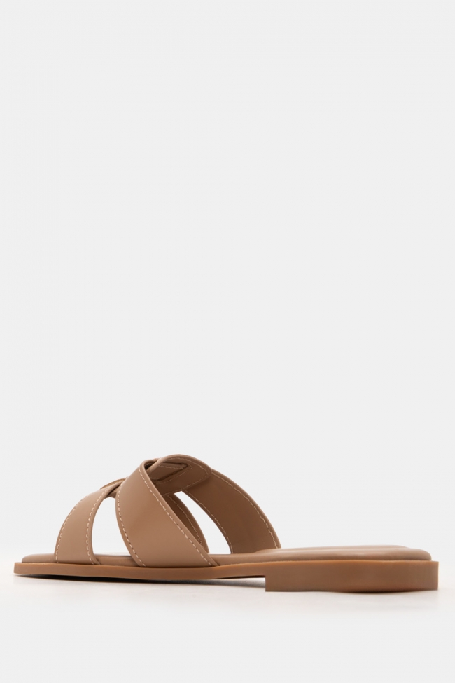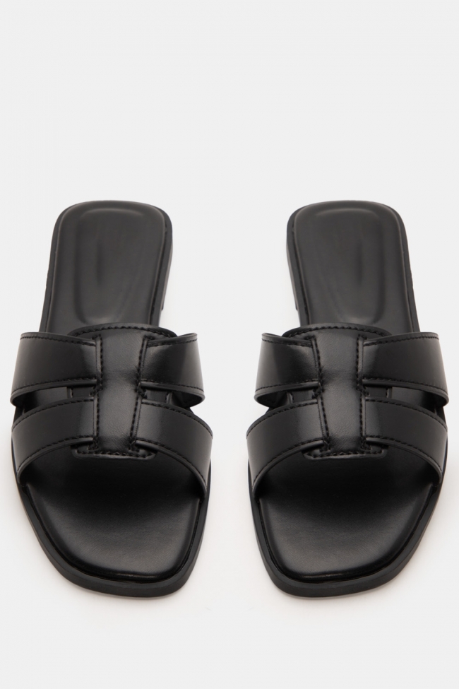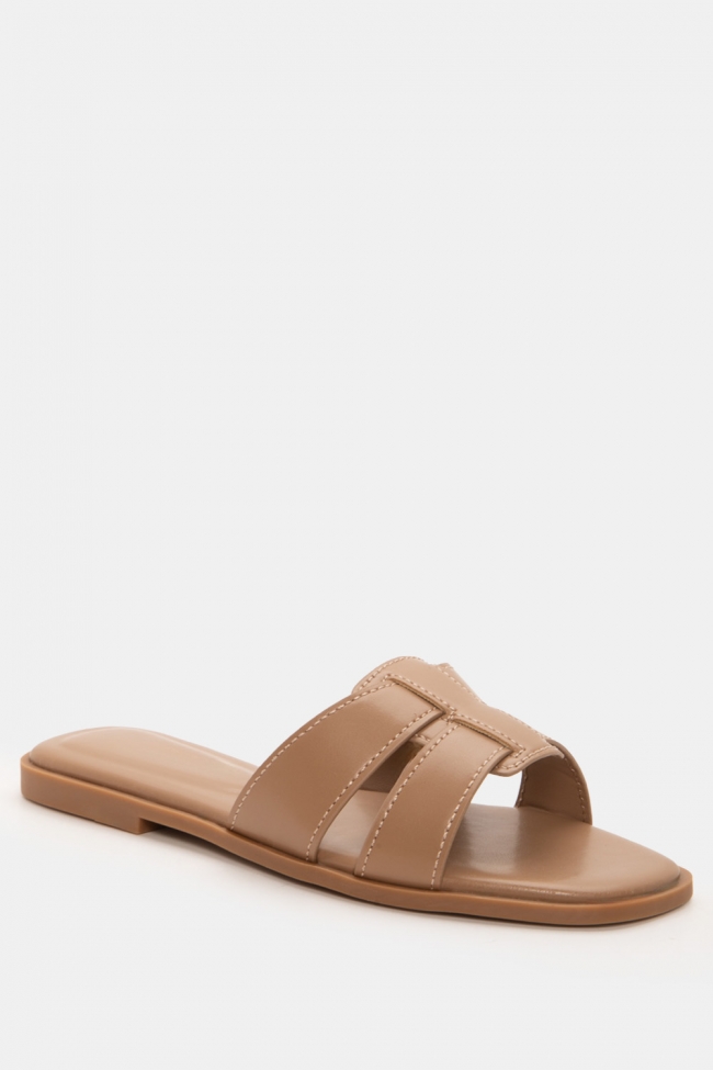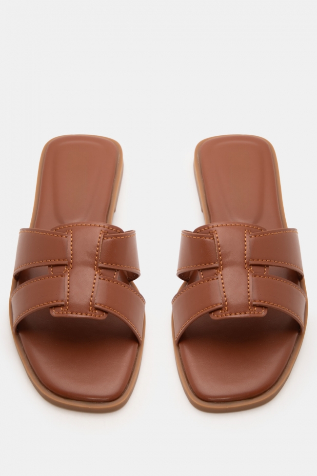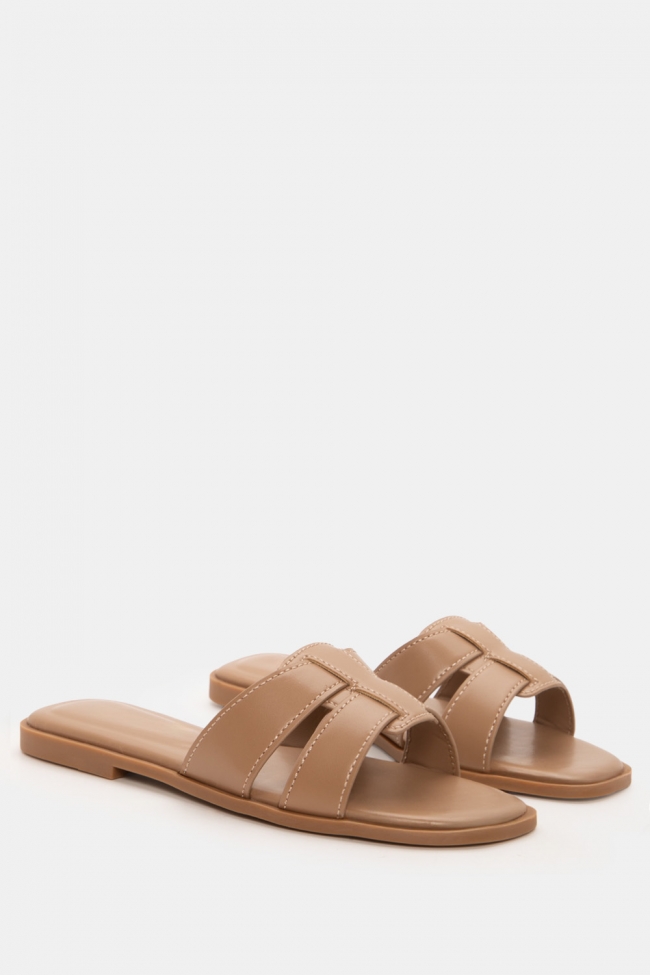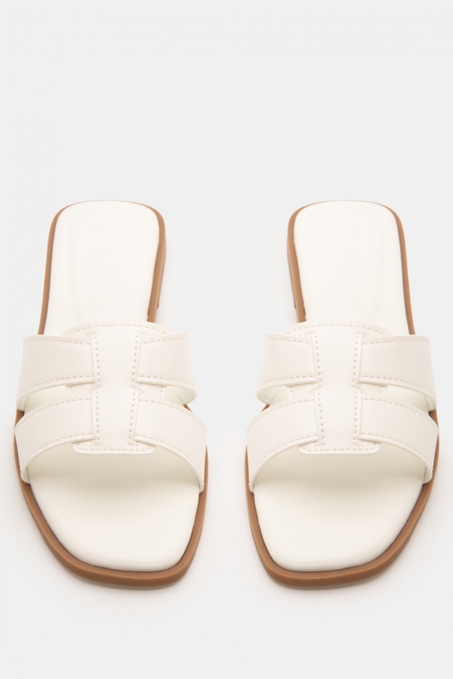 #1. Sandale plate cu linie minimală: Perfecte pentru lookuri zilnice cu blugi, pantaloni scurți sau rochii lejere.