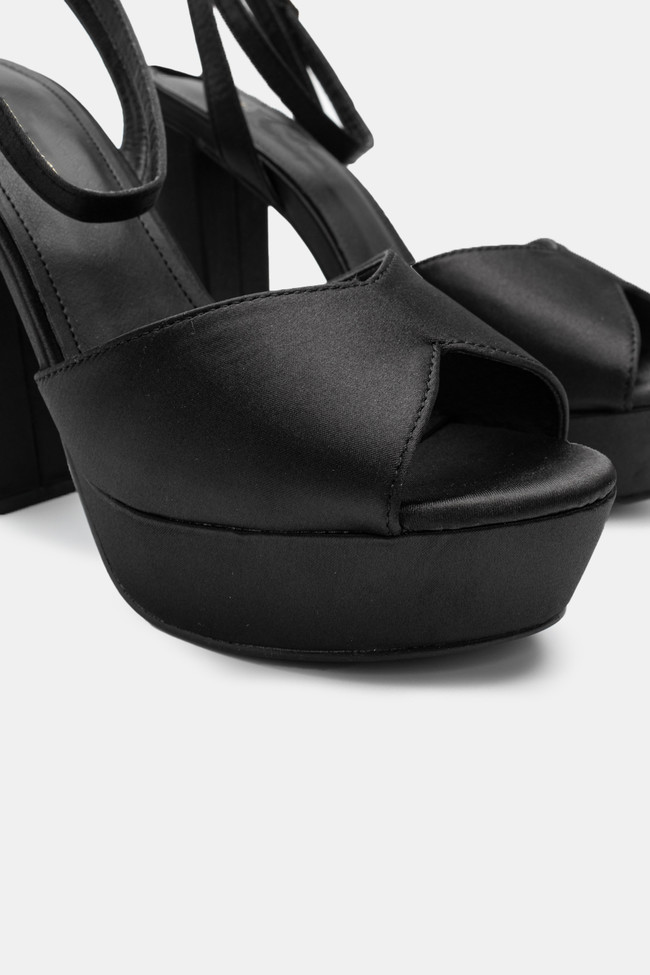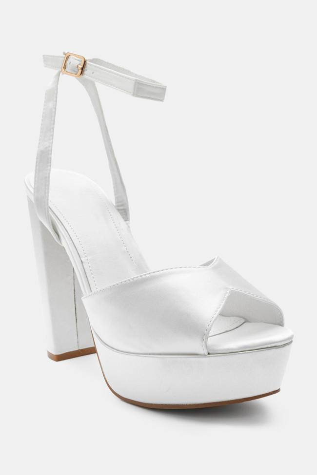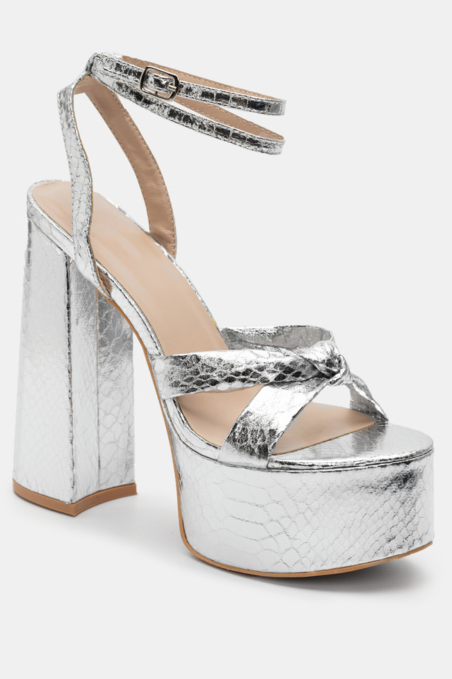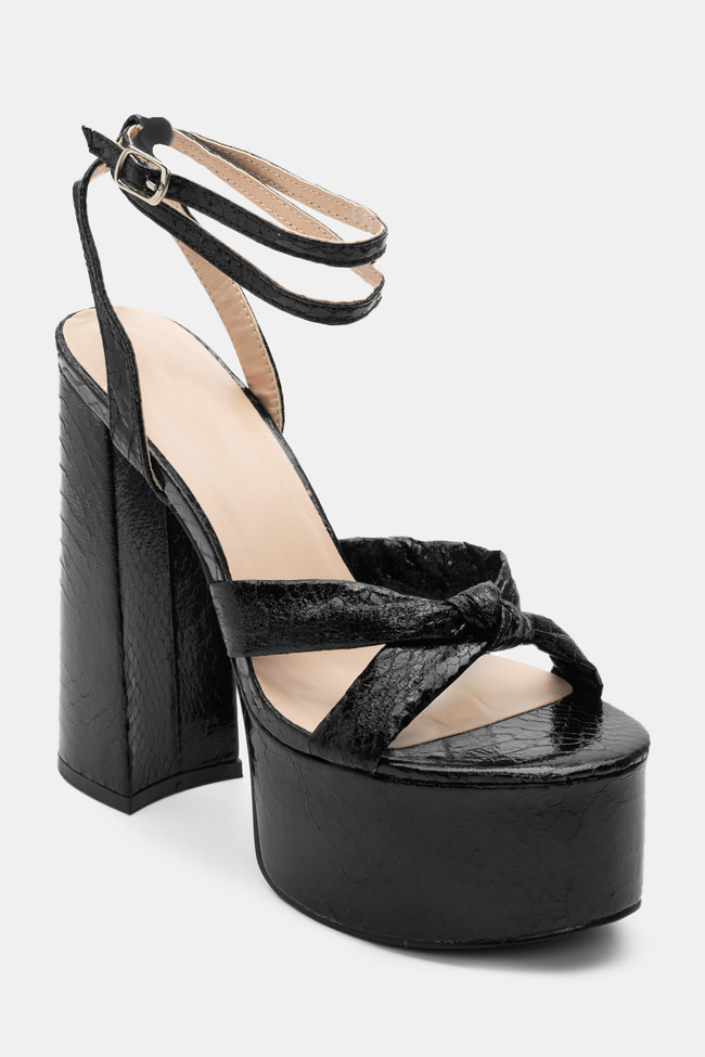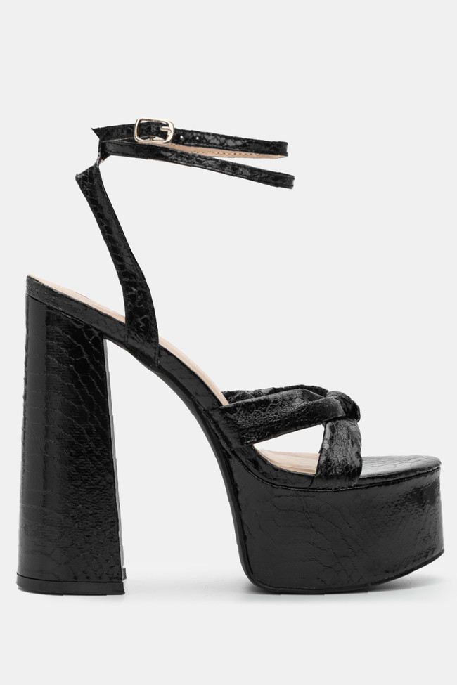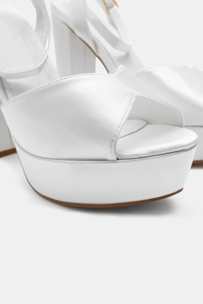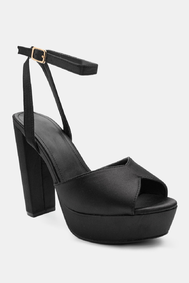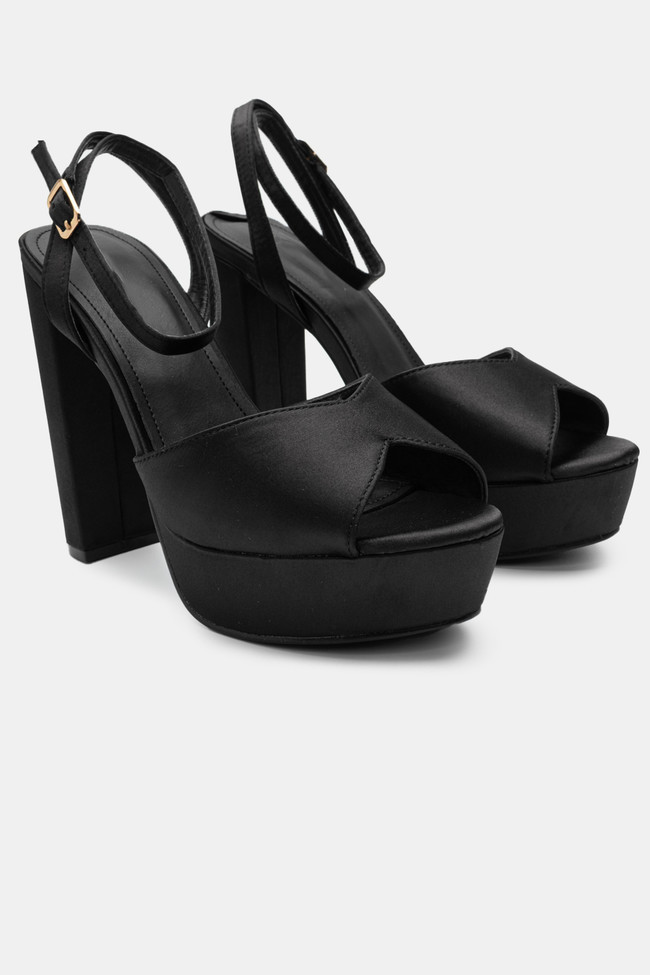 Satin Peep Toe Sandals with Twisted Strap & Platform