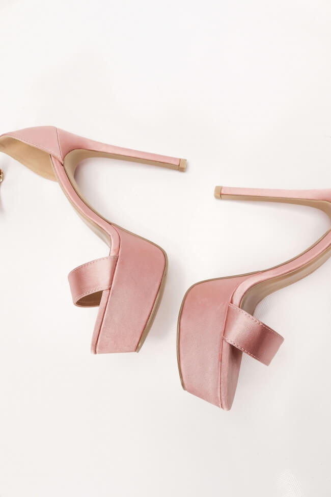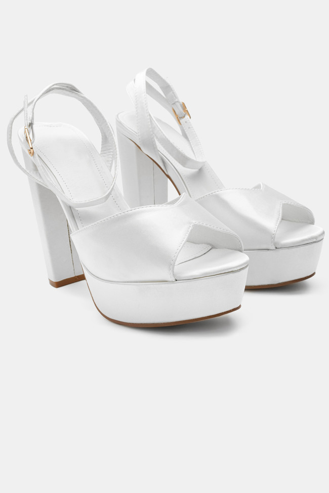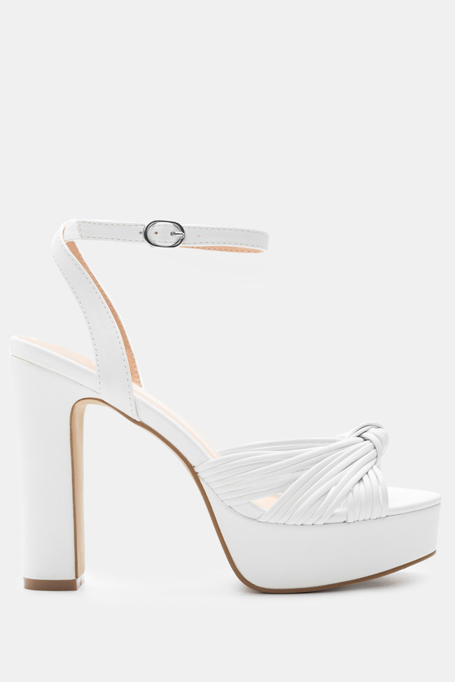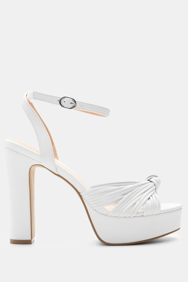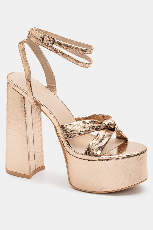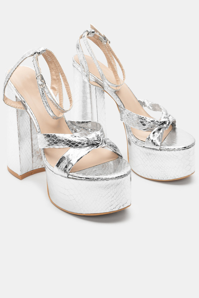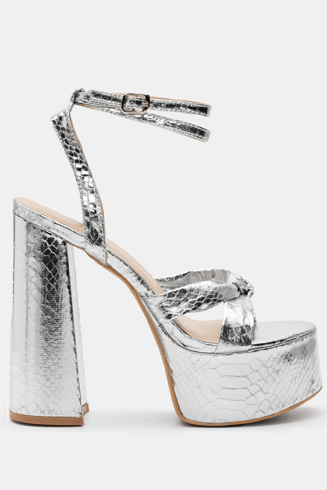 Satin Peep Toe Sandals with Twisted Strap & Platform