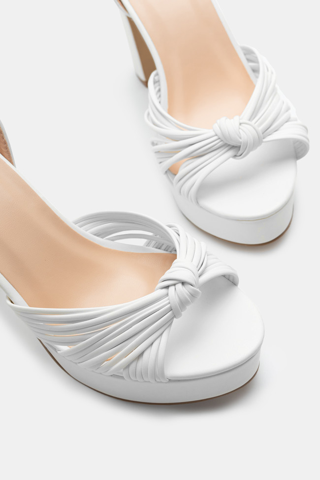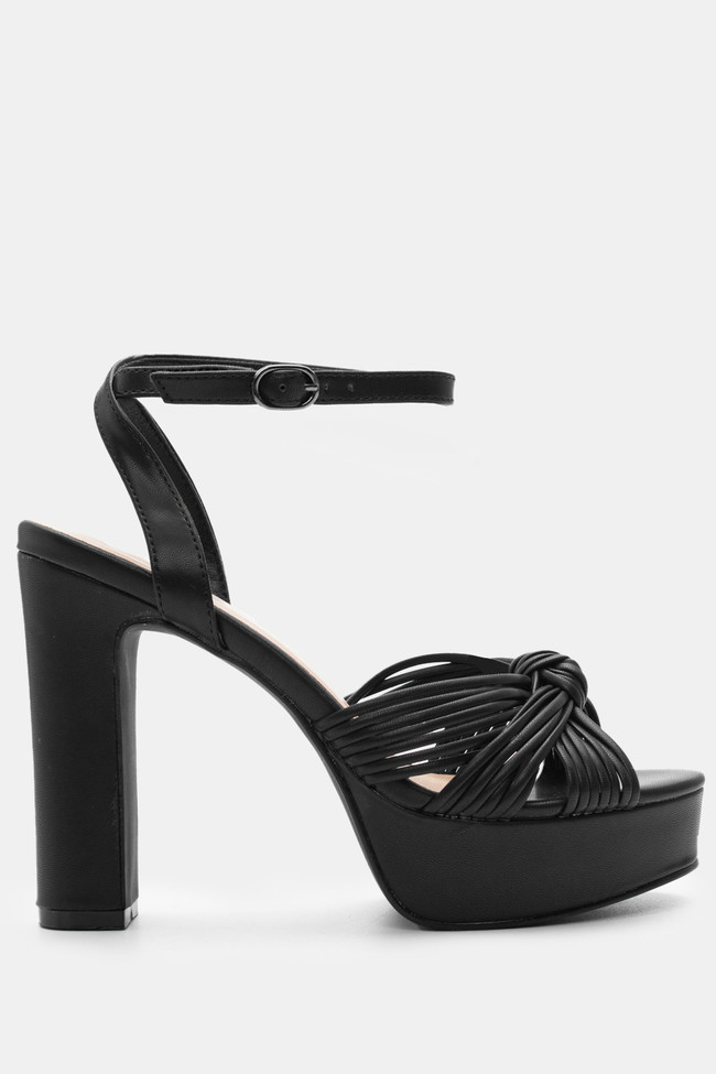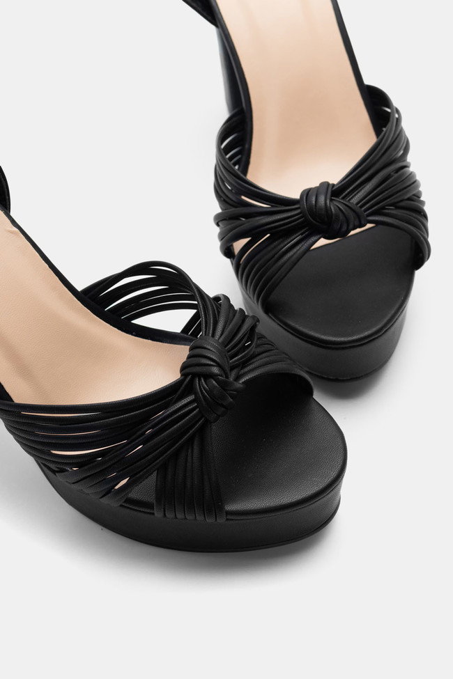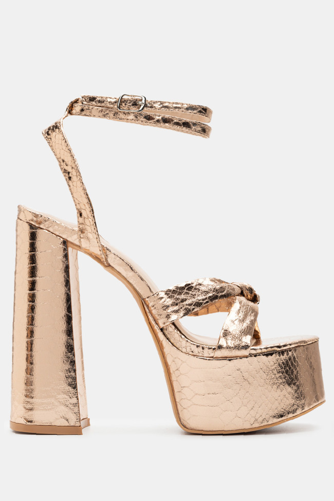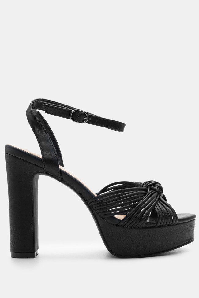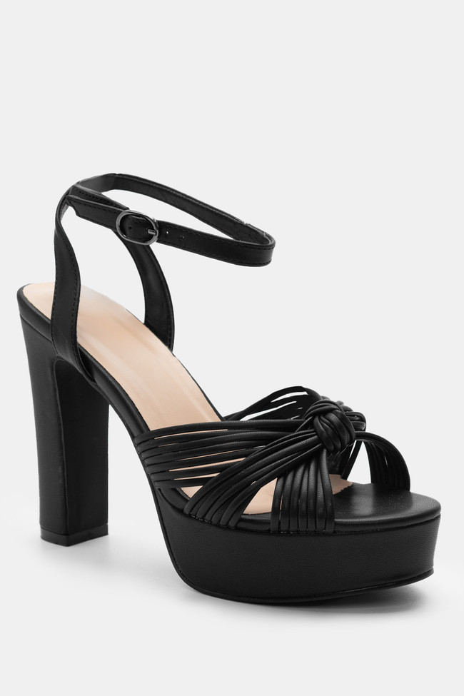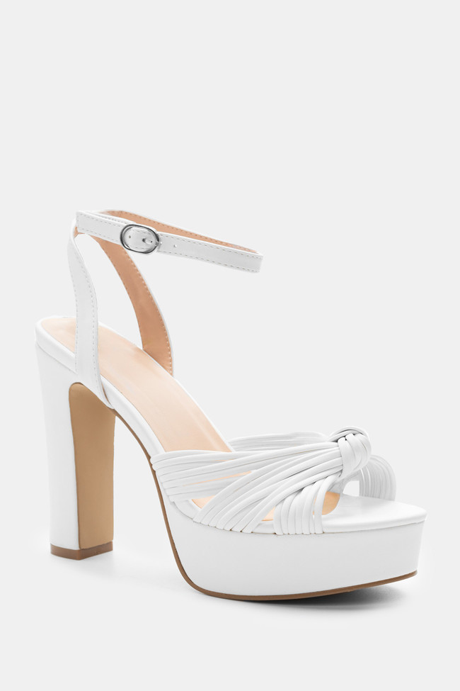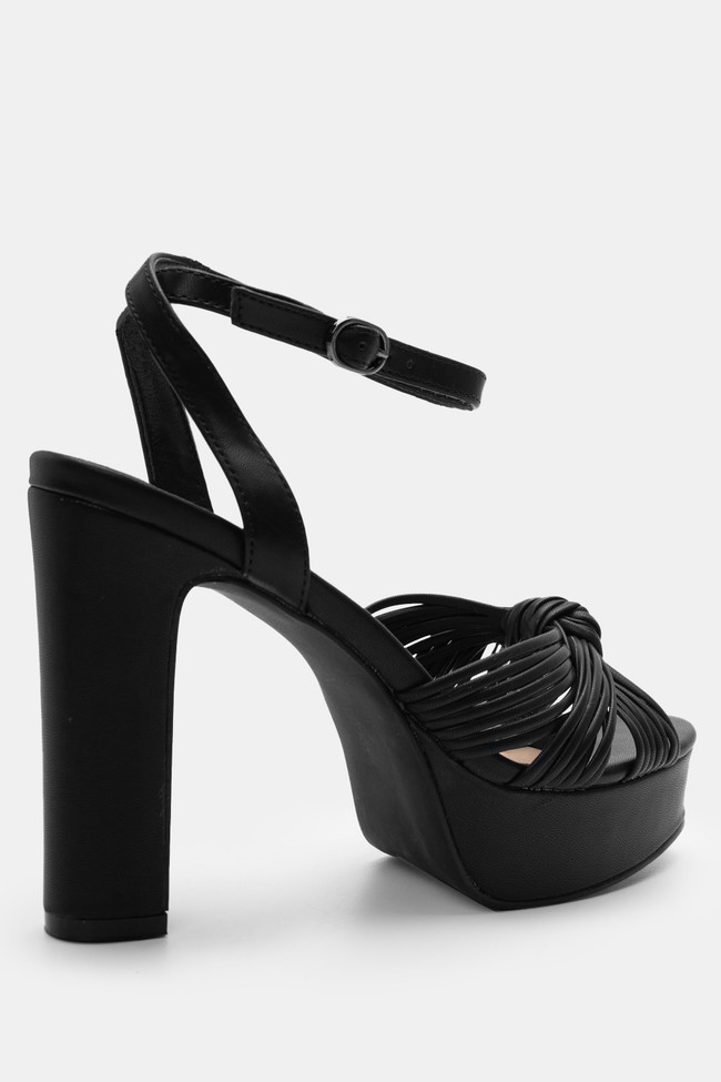 Satin Peep Toe Sandals with Twisted Strap & Platform